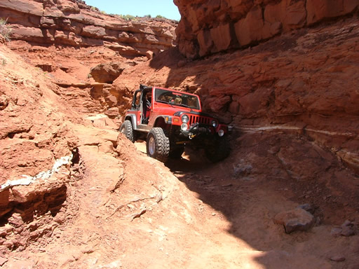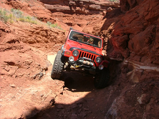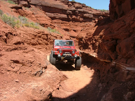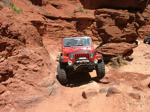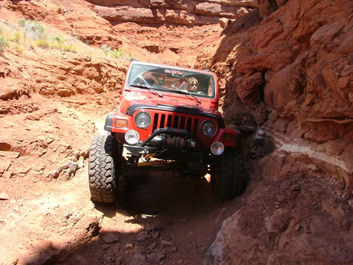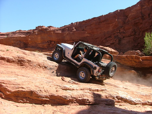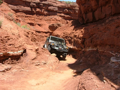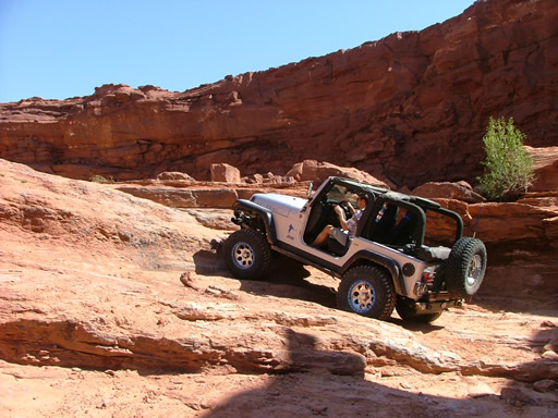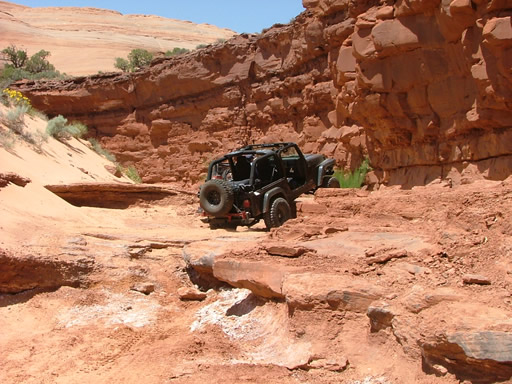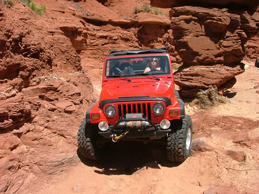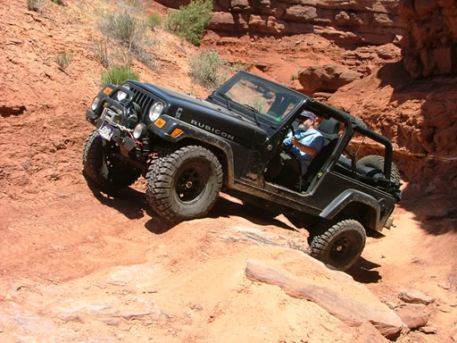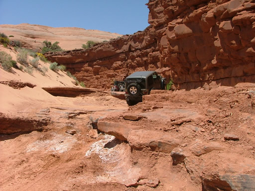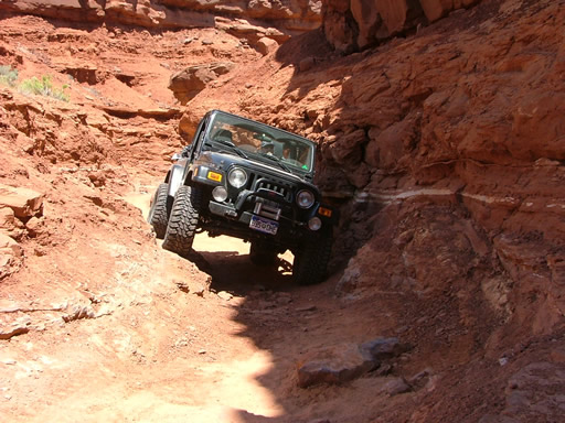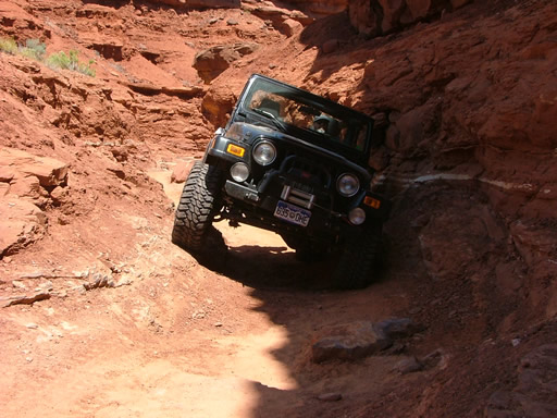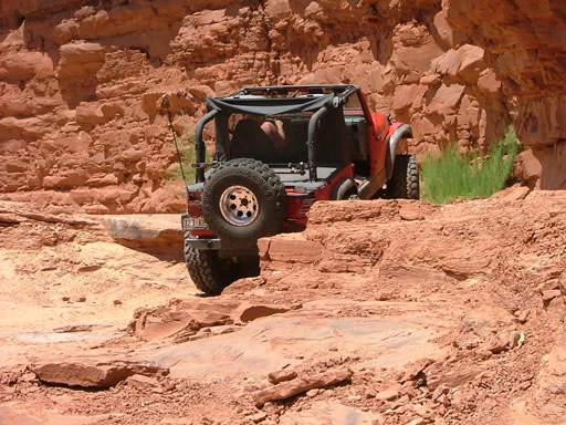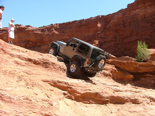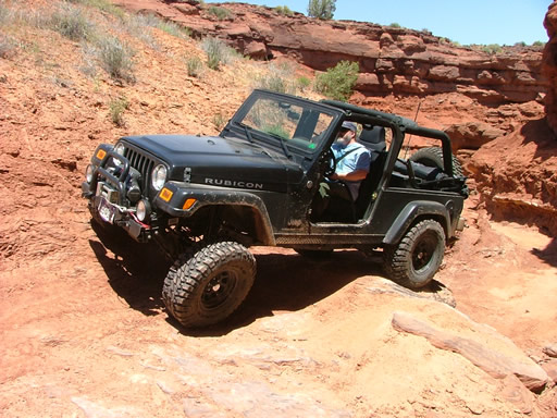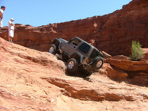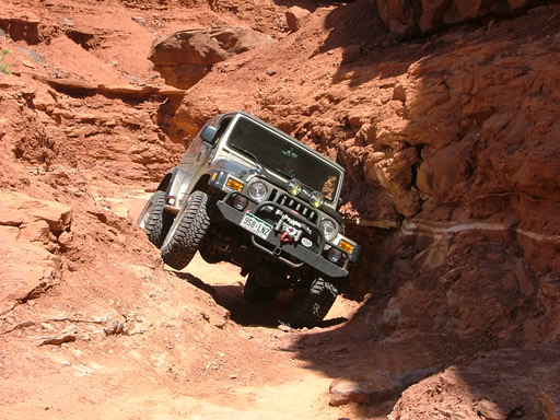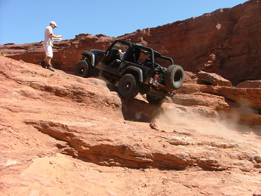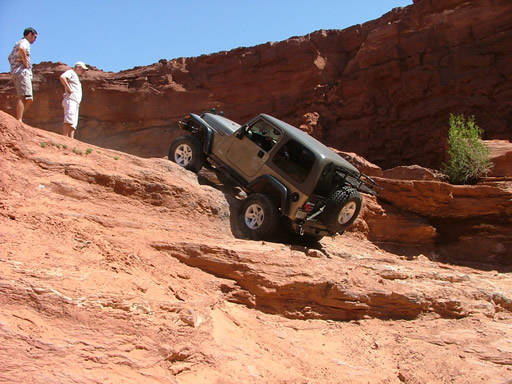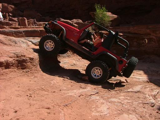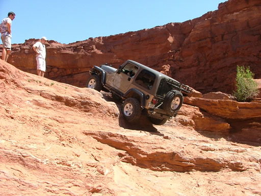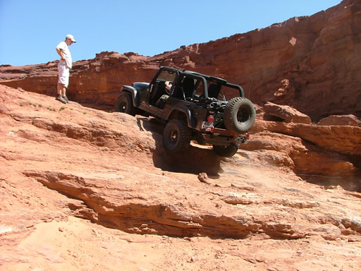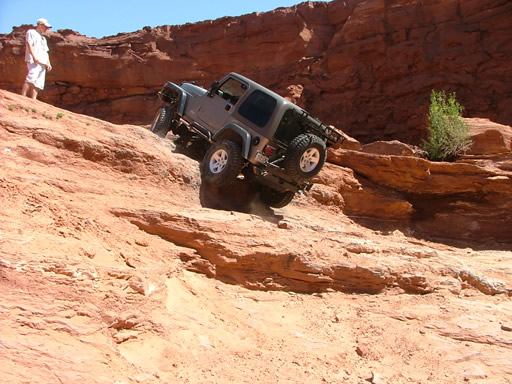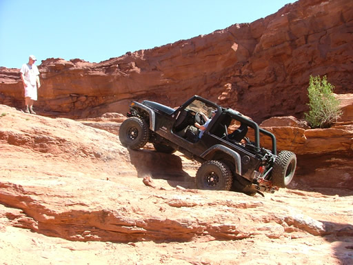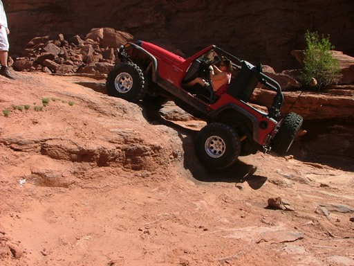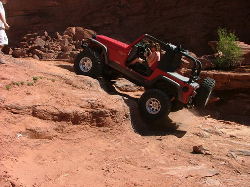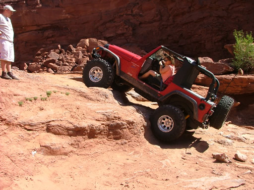 Michael had a longer wheelbase, but it didn't end up helping or hurting. The rocks next to Balancing Rock were no problem. He followed Monica's tire tracks around and through the Pickle, and didn't get too close to the wall. The final hill wasn't an issue, and then he was through it, too.