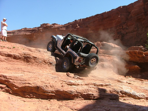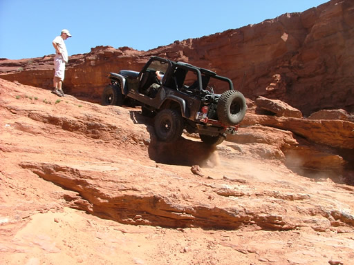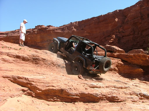Walt was worried about his hard top, but now it seemed like it was going to be okay. He drove right over the initial rocks, then took a very high and tippy line through the Pickle. Even with the additional tipping he still didn't get too close to the wall. He popped right over the final hill and we all breathed a sigh of relief.