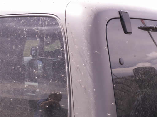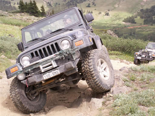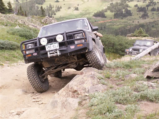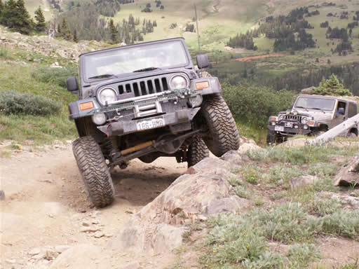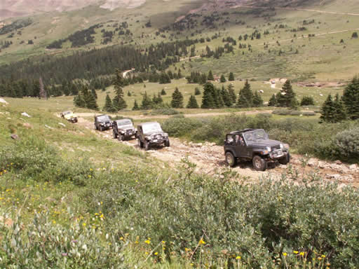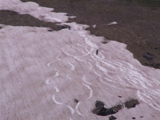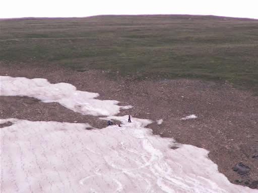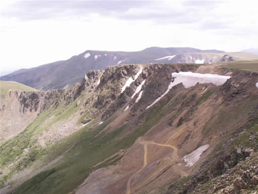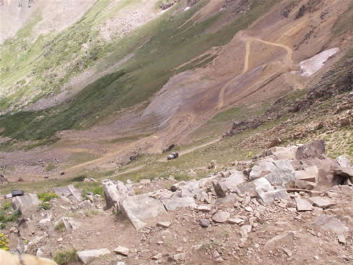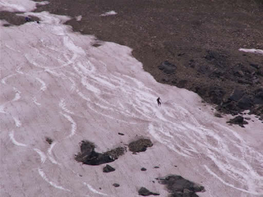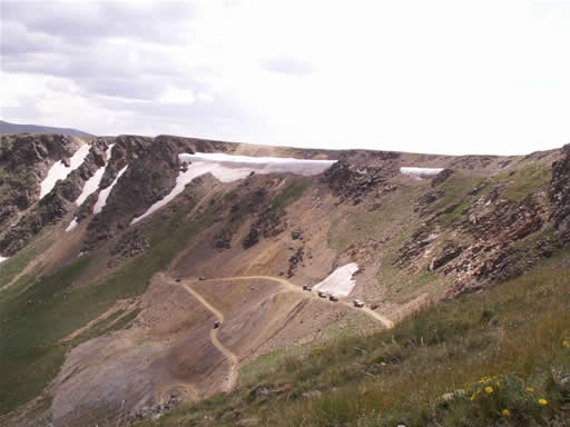 On the way down, someone came over the CB to point out some skiers on our right. A large snow drift refusing to melt covered part of the mountain while a couple of guys were skiing down it. This provided some comic relief. All of us agreed that they were nuts!
