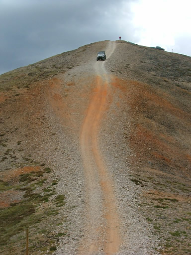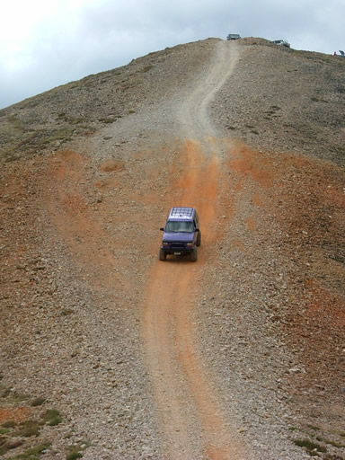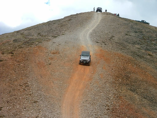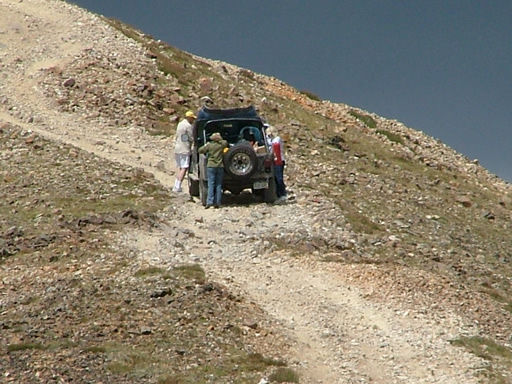We watched the trail wrecking Jeep bounce its passengers all over the place and picked up the trash that fell out of it on the way up. Their karma finally caught up with them and they overheated right before getting to the top, blocking the trail for everyone.