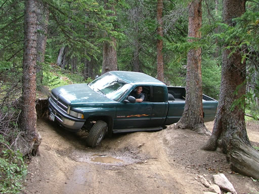 We were all wondering how Kendall's truck would do in the tight switchbacks with whoopdeedoos but he showed us we had nothing to worry about. It's a big truck but it made it through just fine.