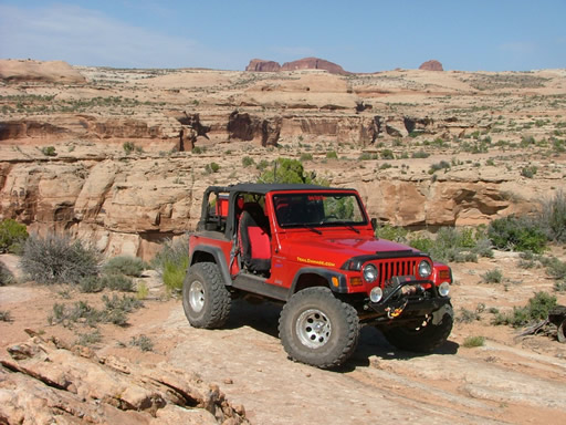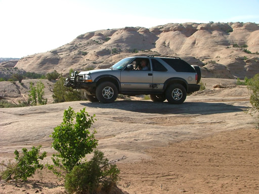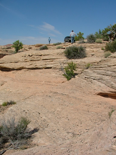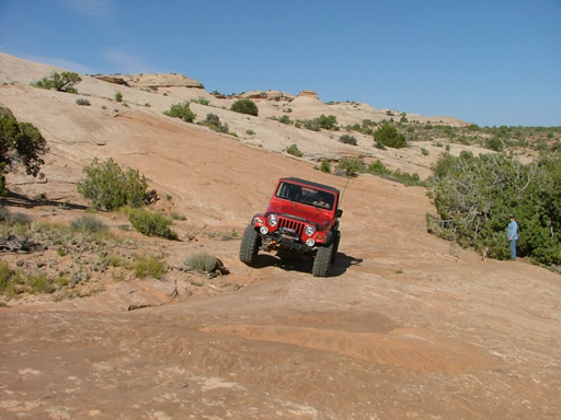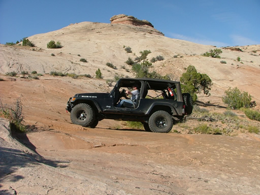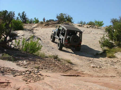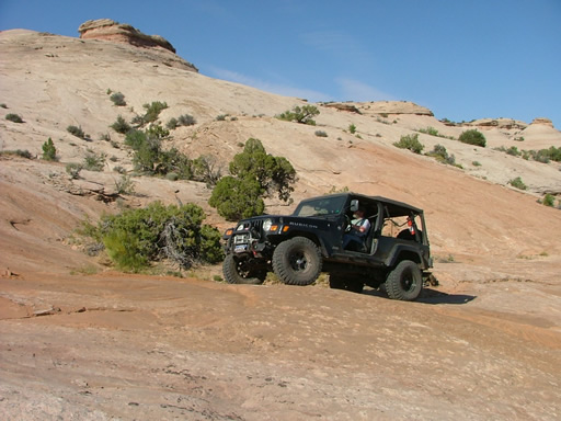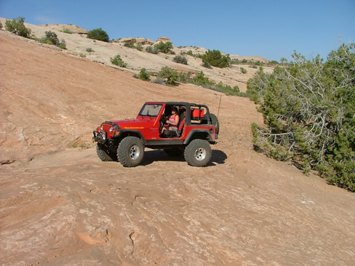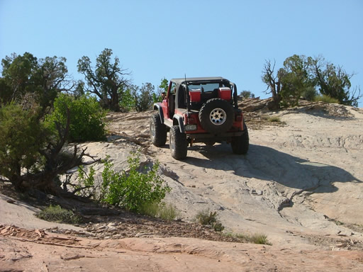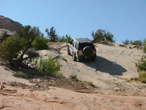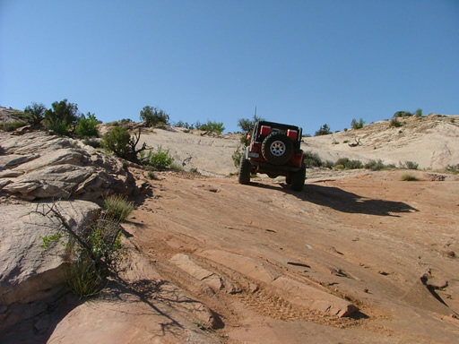 After the overlook we came back, expecting to drive around a big fin. Instead, the trail took us right to it and we drove up and over it. That was a nice surprise! It was a fun and steep climb, much like some of the climbs on Fins & Things. The view from the top was really nice, too.