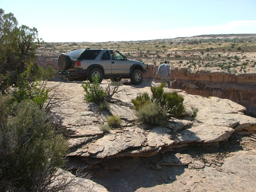 We started off by doing the third that goes to the overlook. We found it pretty easily. Though it is definitely not the most scenic overlook in the area, it was pretty cool. Both Steve and Michael drove out to the very edge. It seemed very loose under their tires, unlike the end of Top Of The World. Scary!