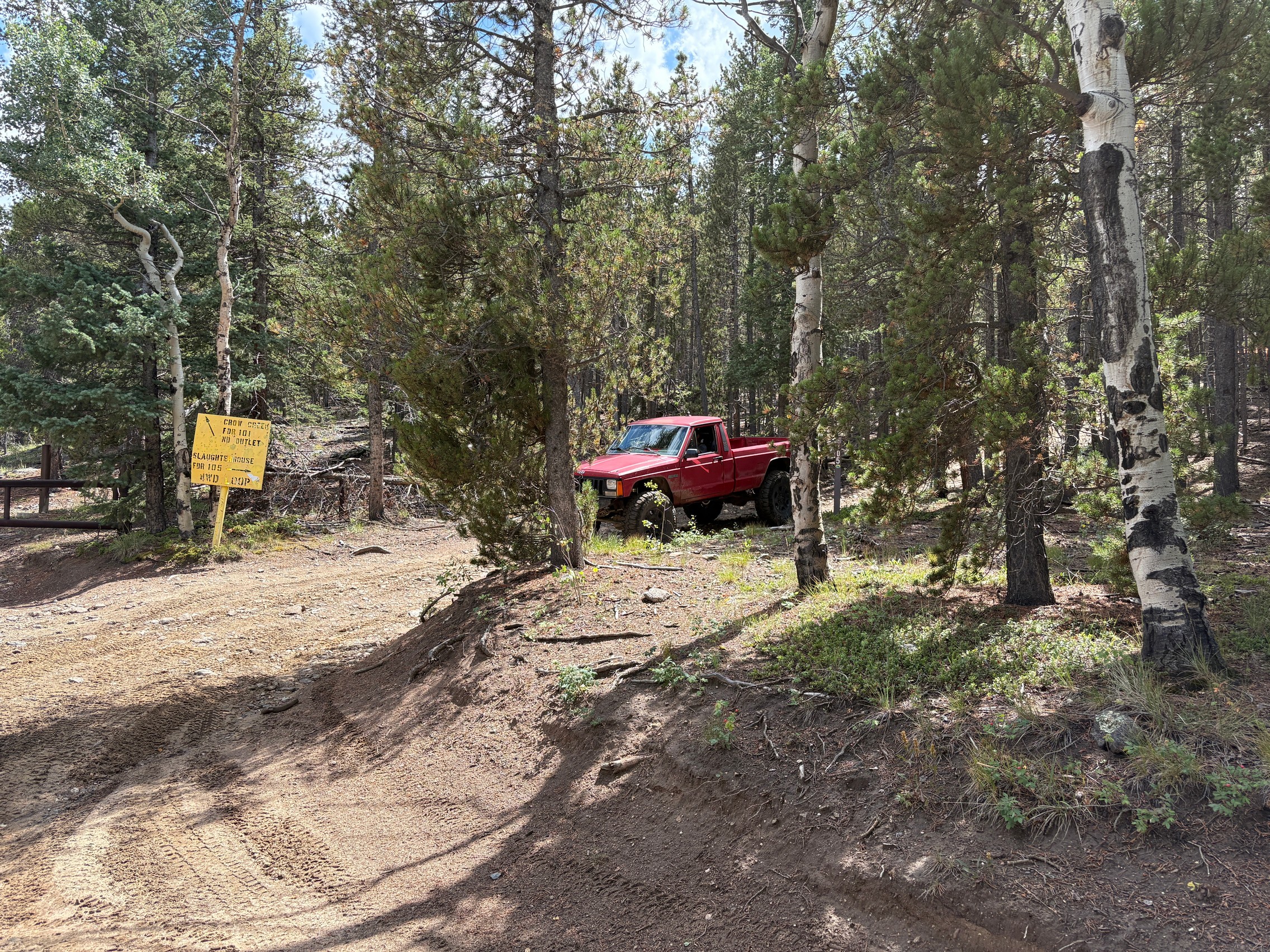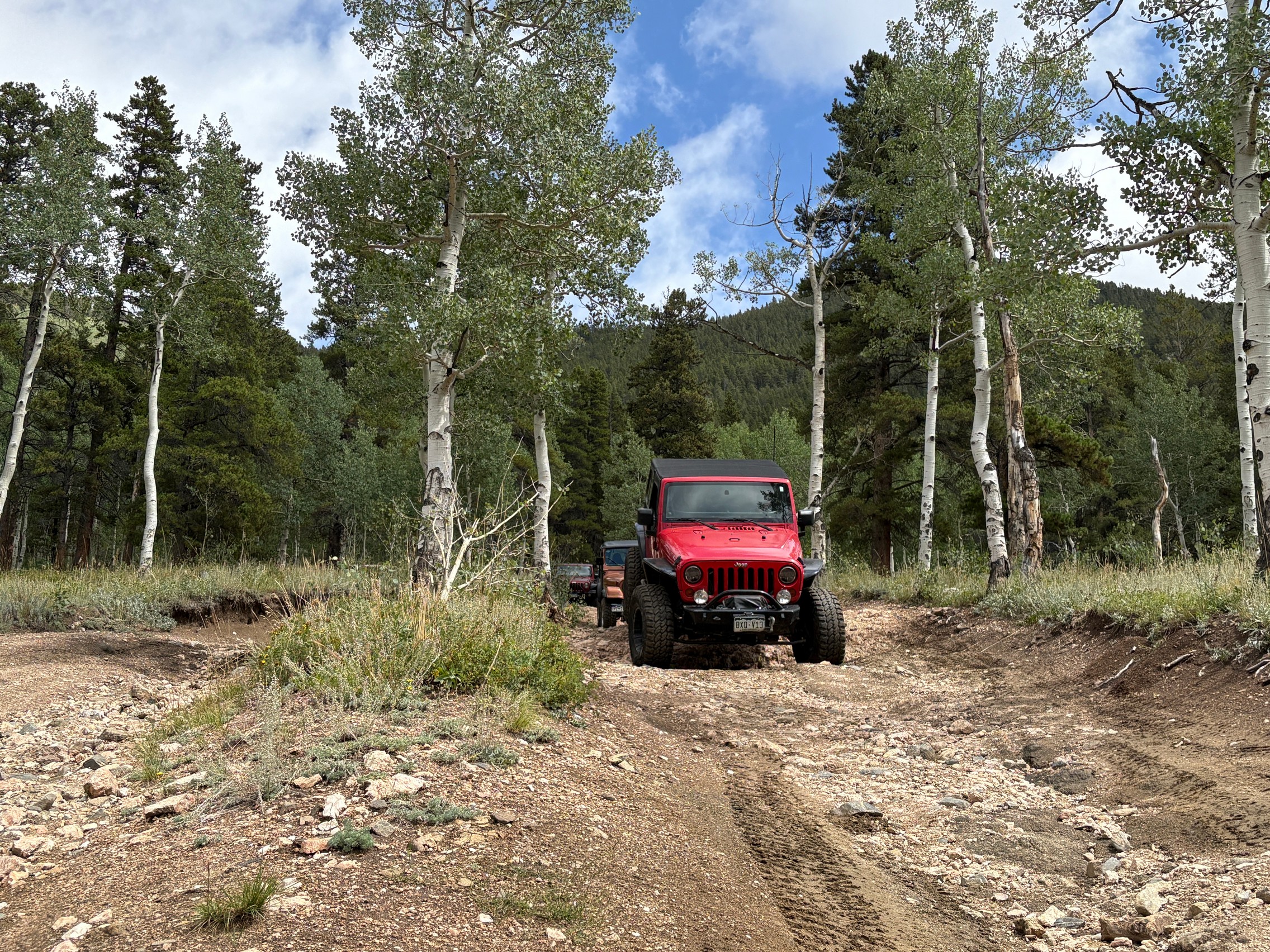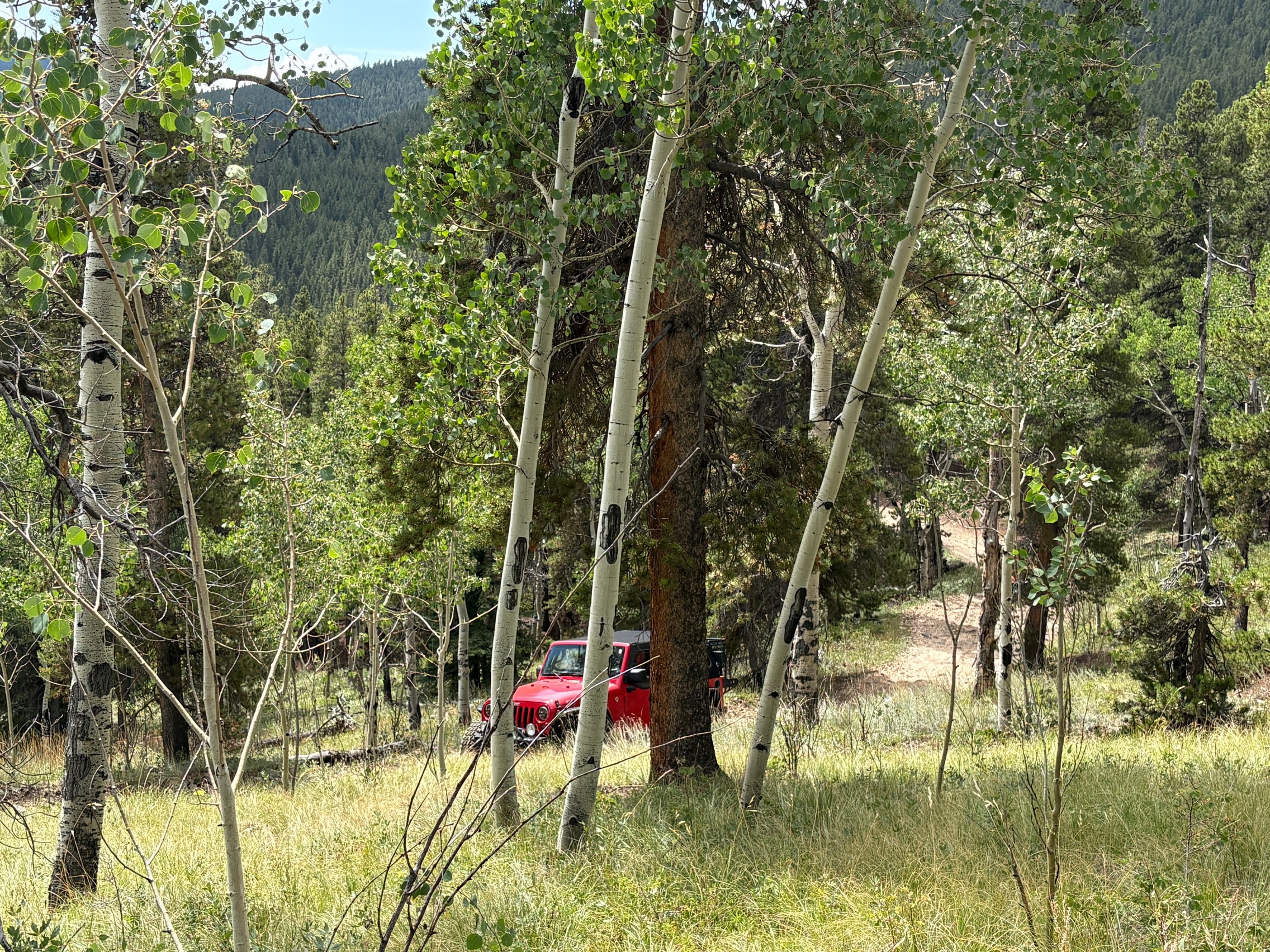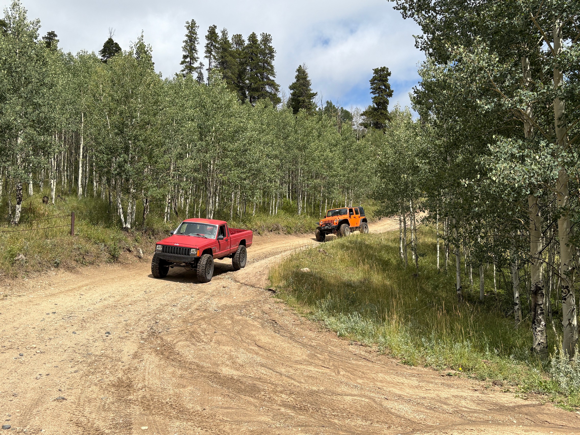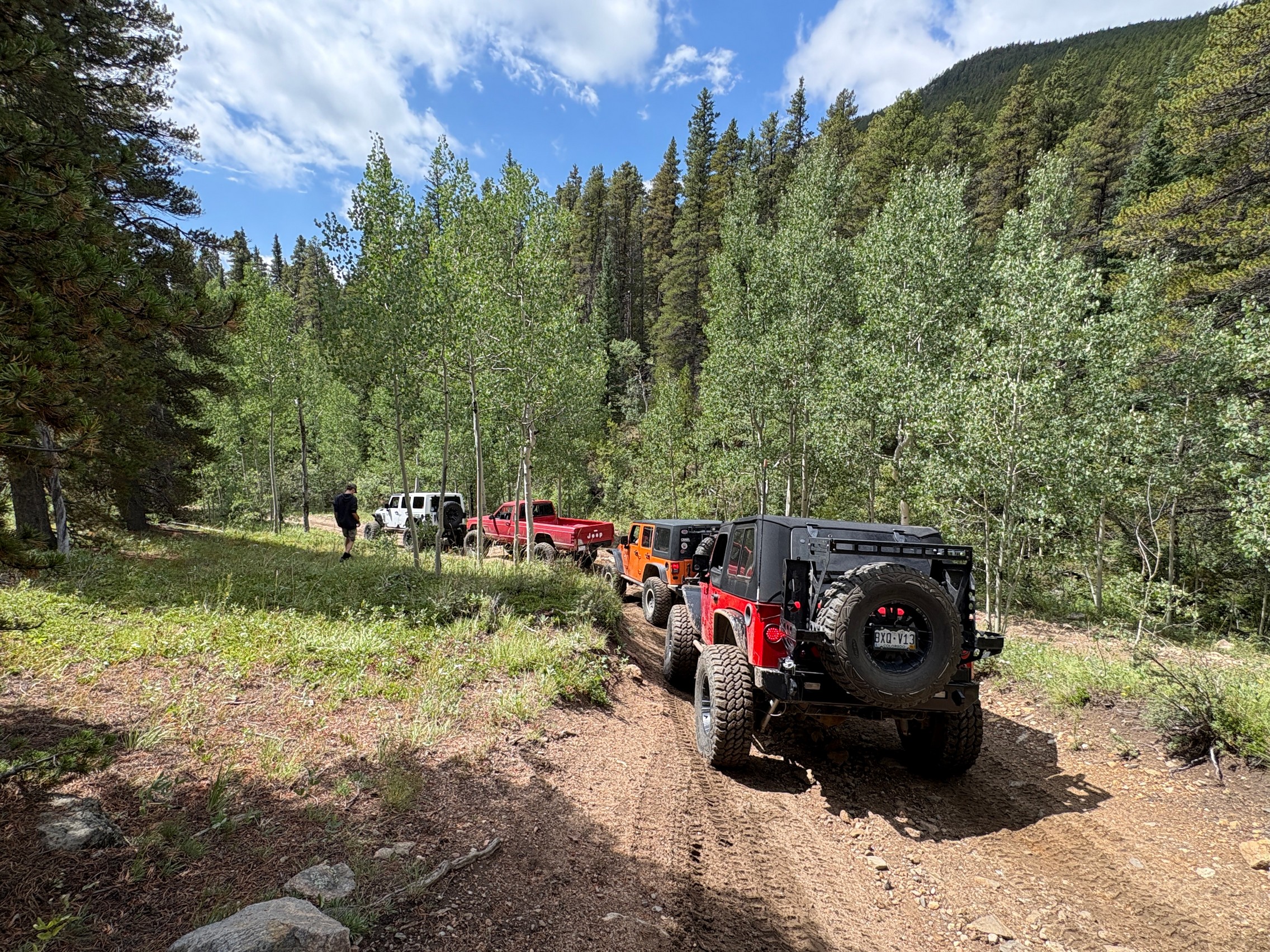 After gassing up, we went to the parking lot at the start of Slaughterhouse Gulch to air down for the trail. In the parking lot, Calvin ran into a few friends. They talked for a few minutes, then we started driving down the trail.