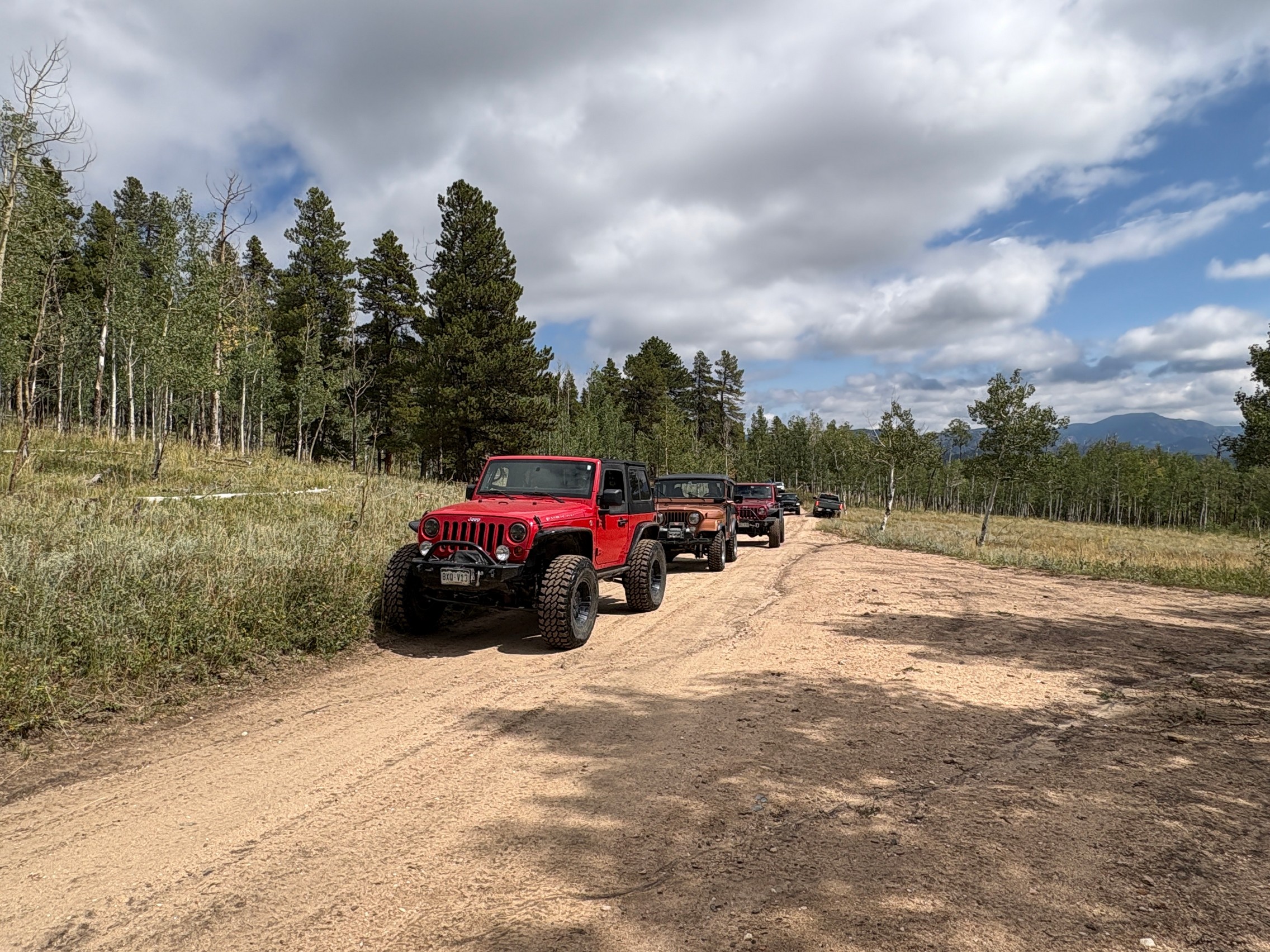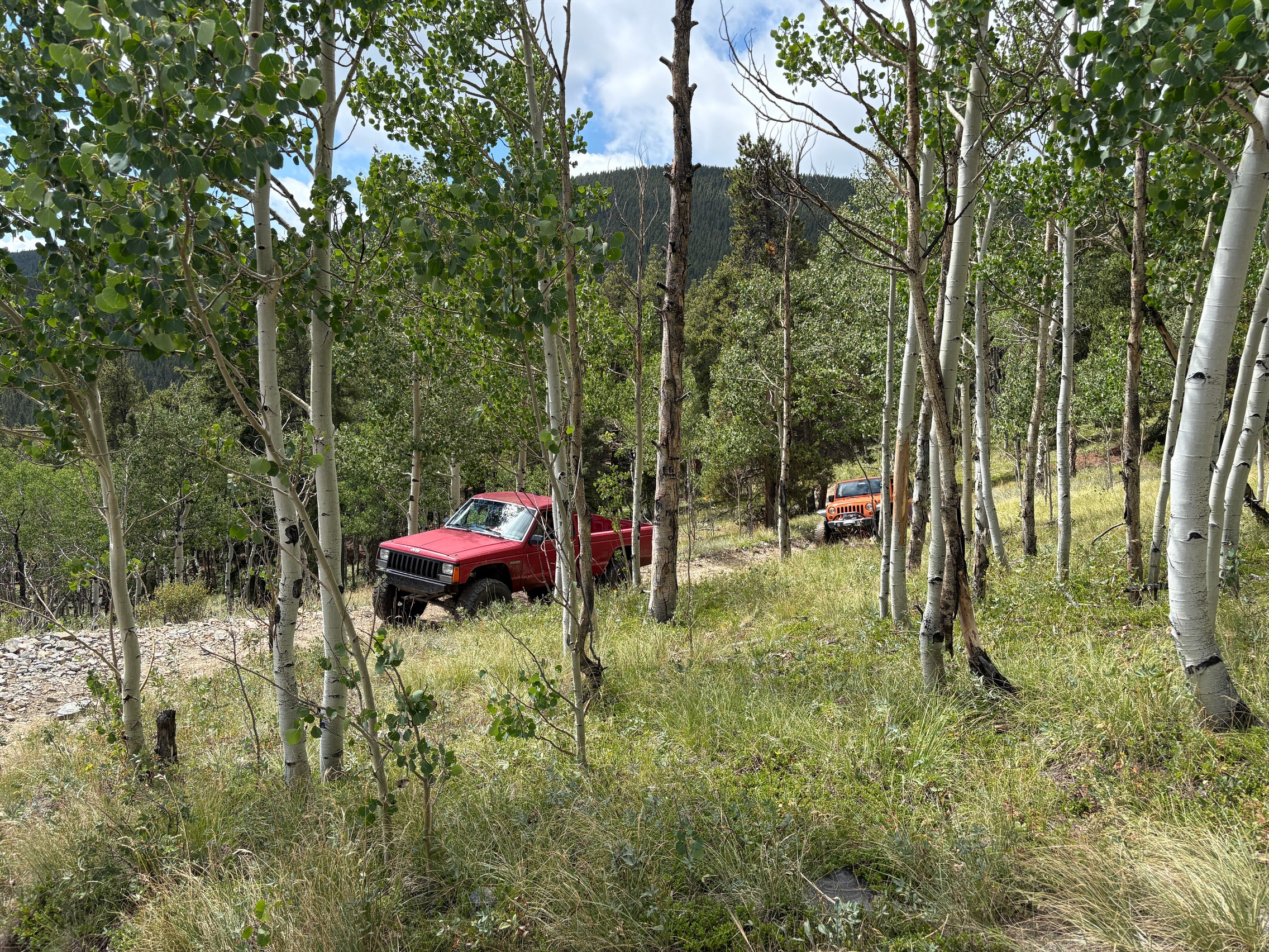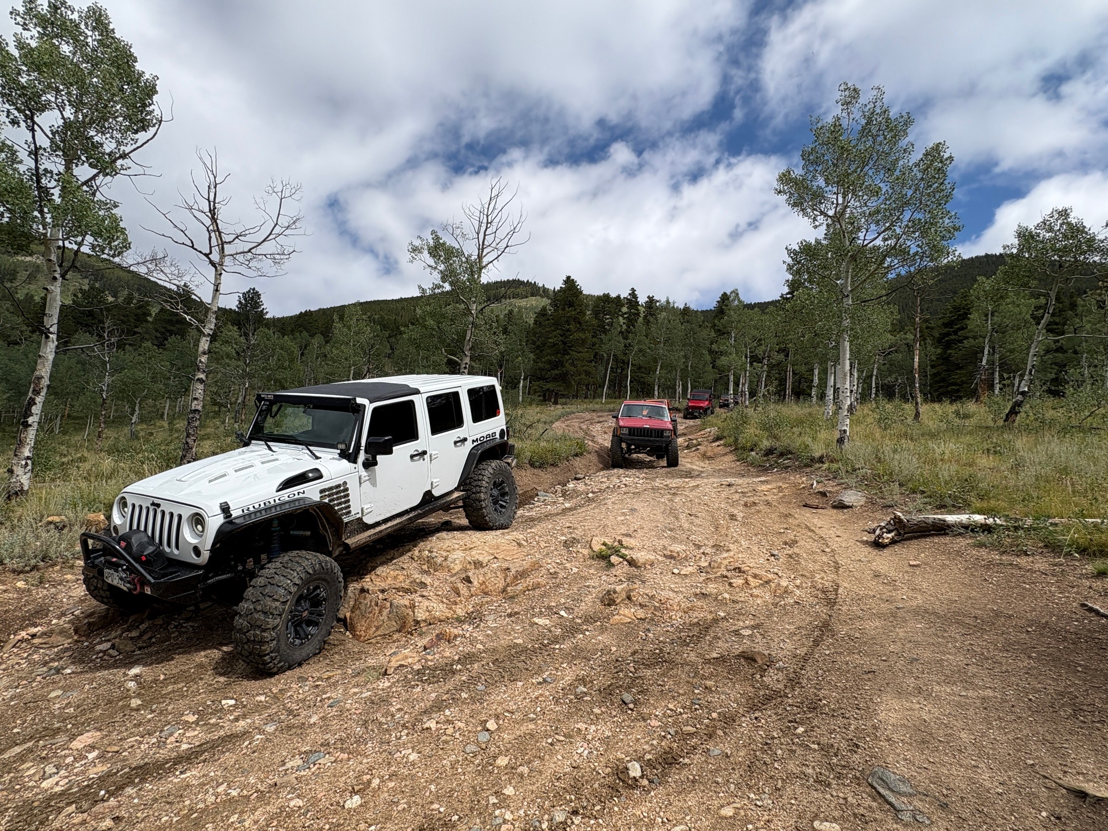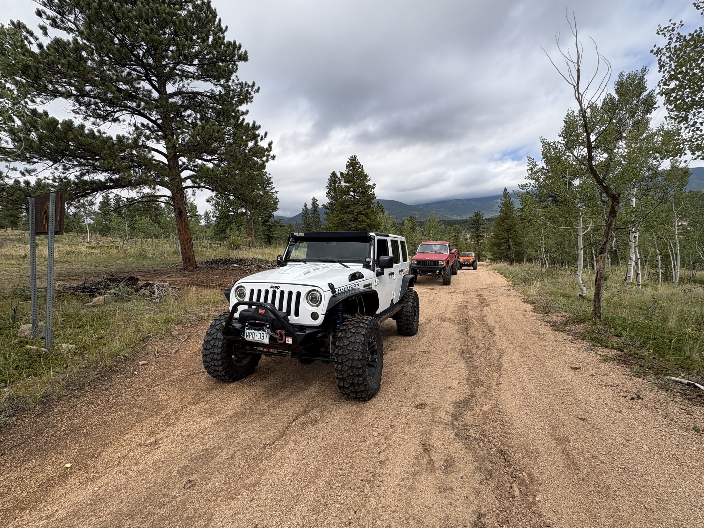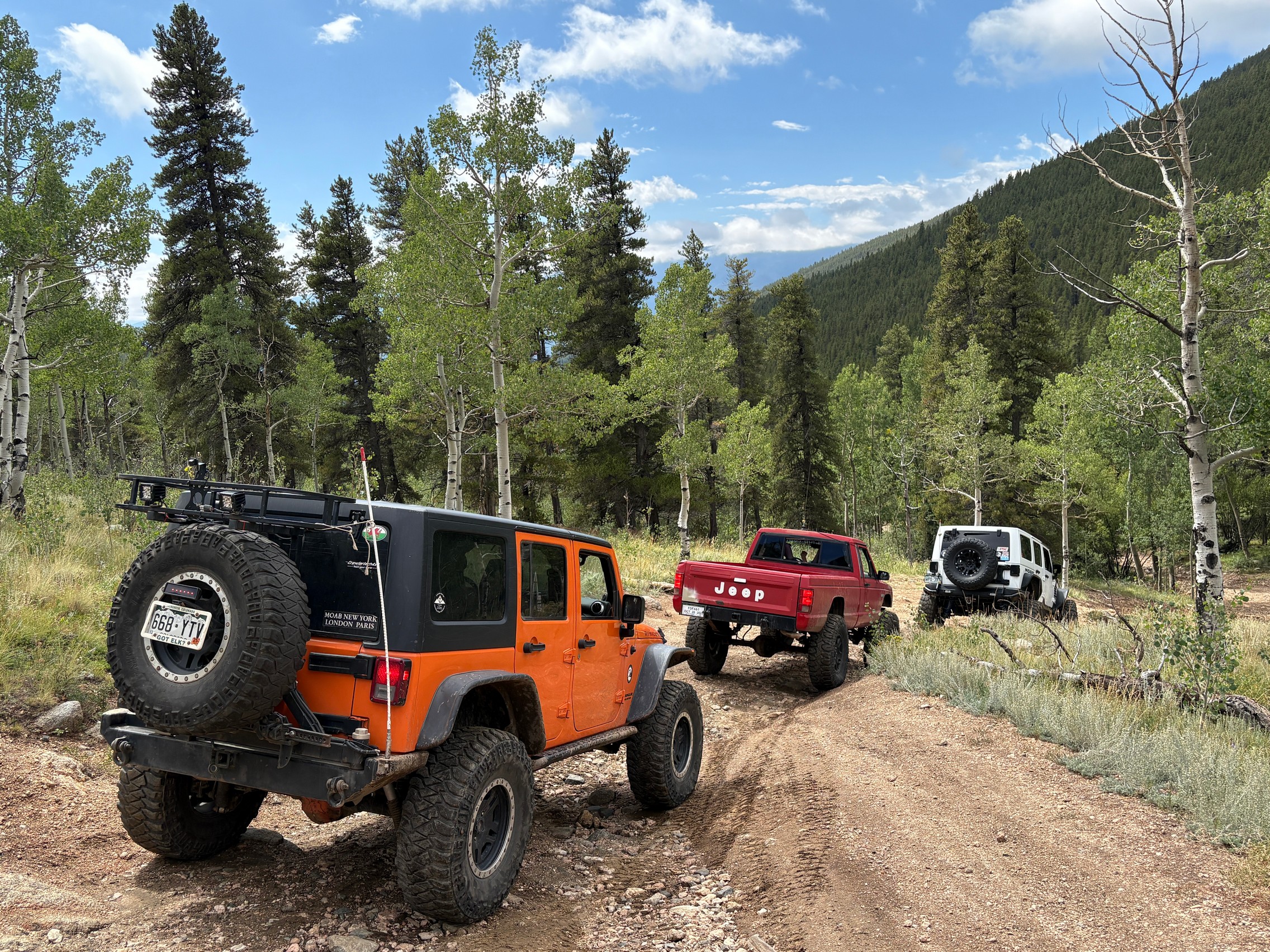 After gassing up, we went to the parking lot at the start of Slaughterhouse Gulch to air down for the trail. In the parking lot, Calvin ran into a few friends. They talked for a few minutes, then we started driving down the trail.