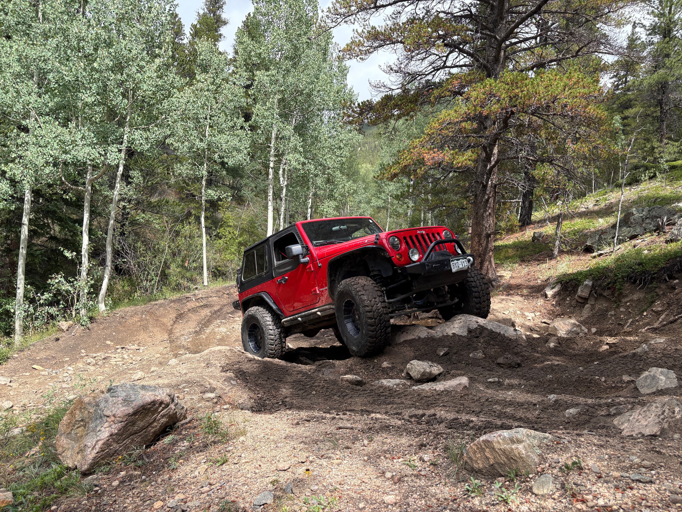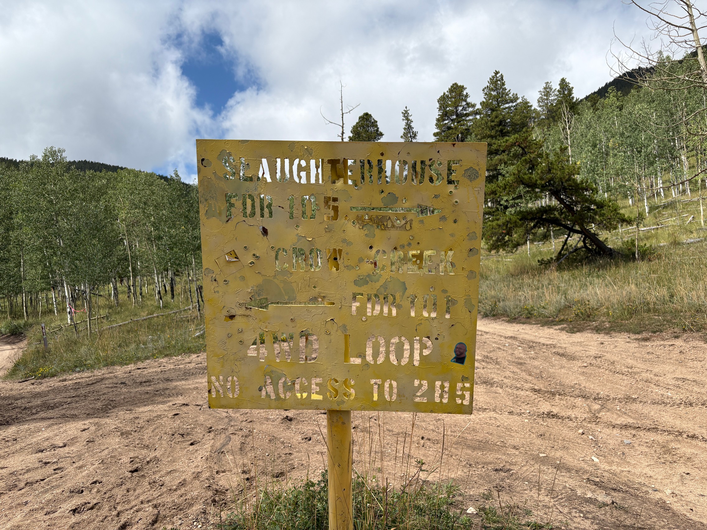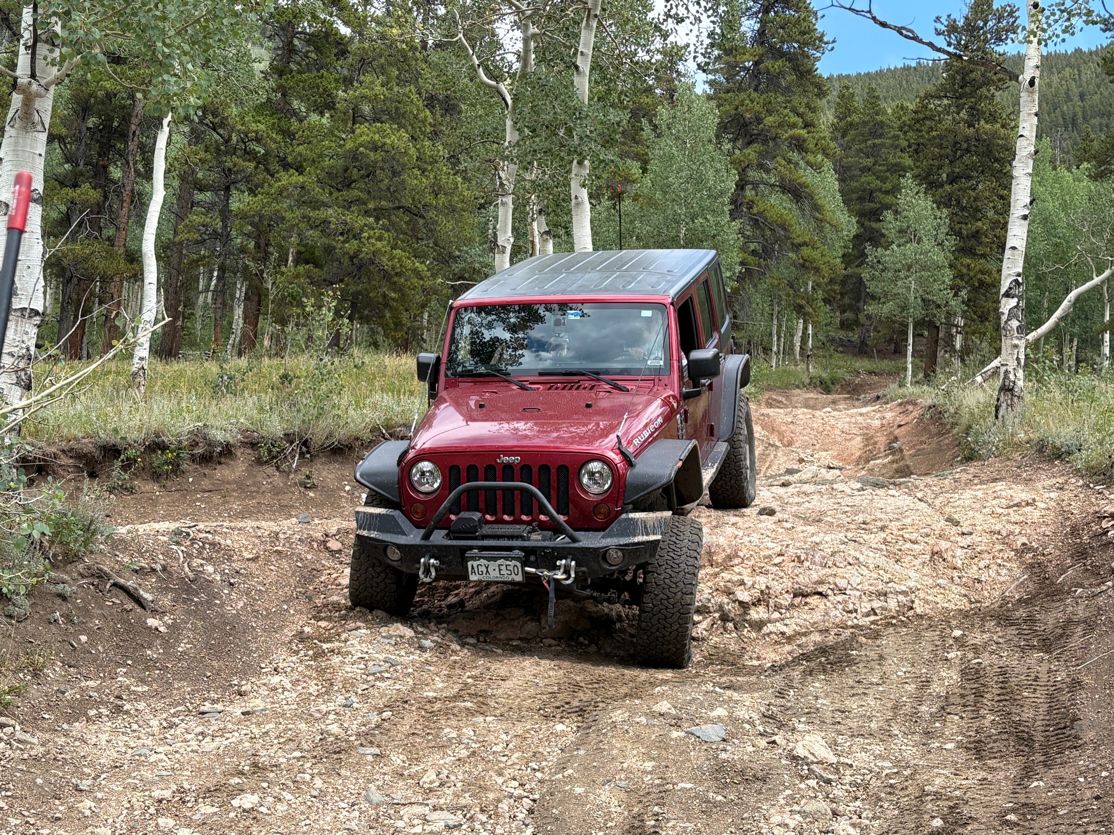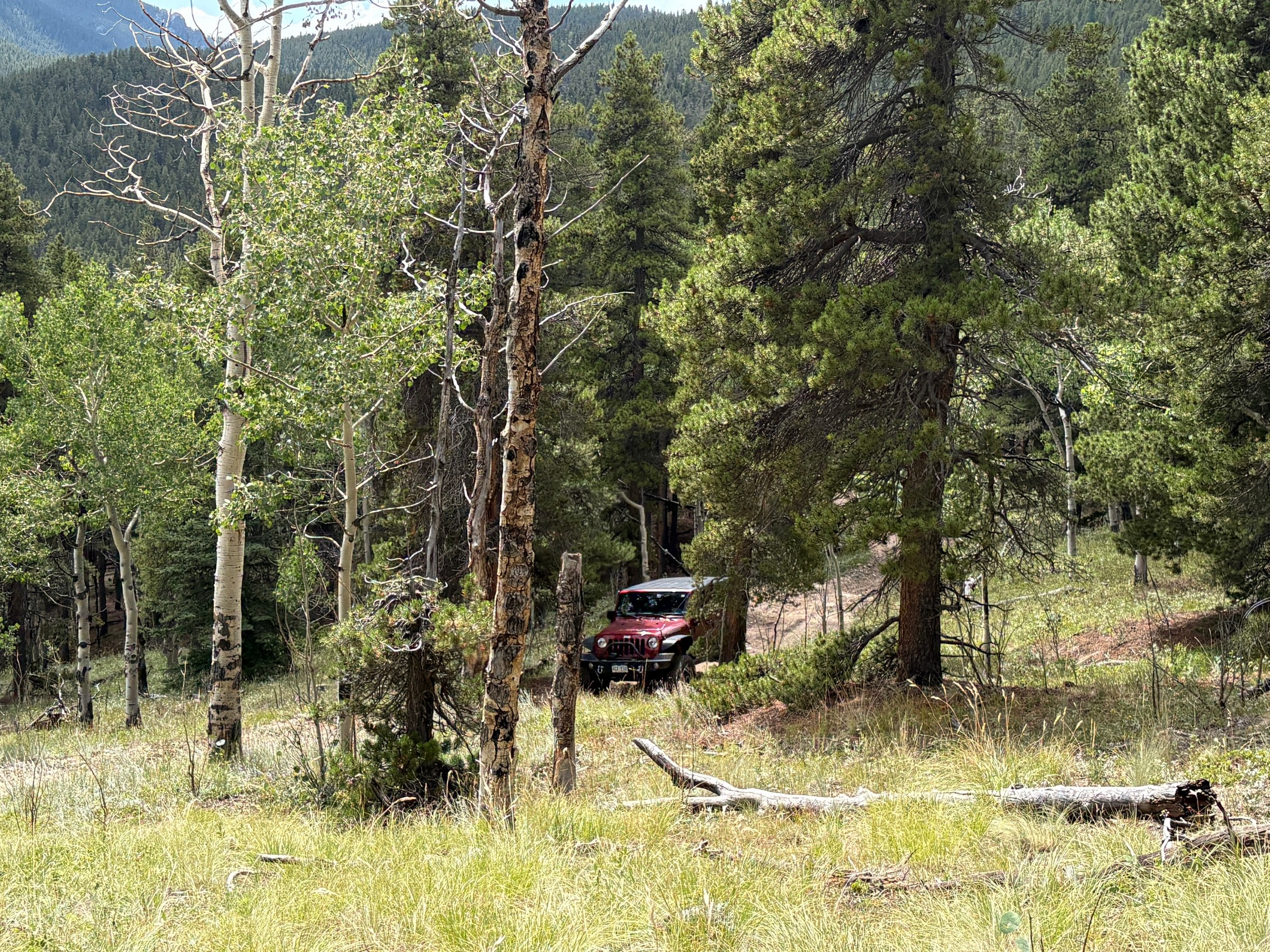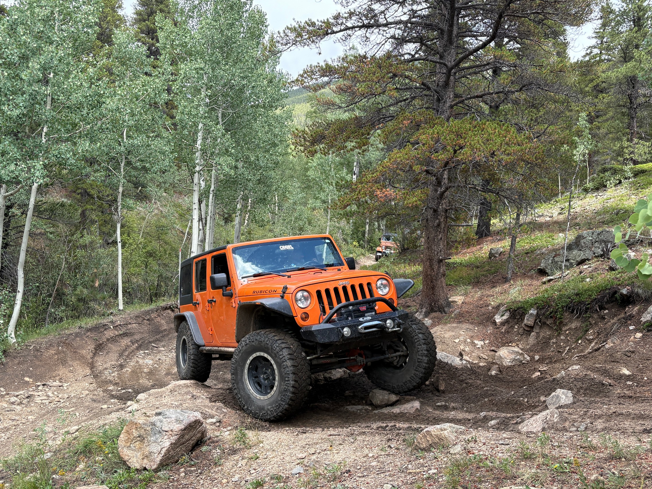 After gassing up, we went to the parking lot at the start of Slaughterhouse Gulch to air down for the trail. In the parking lot, Calvin ran into a few friends. They talked for a few minutes, then we started driving down the trail.