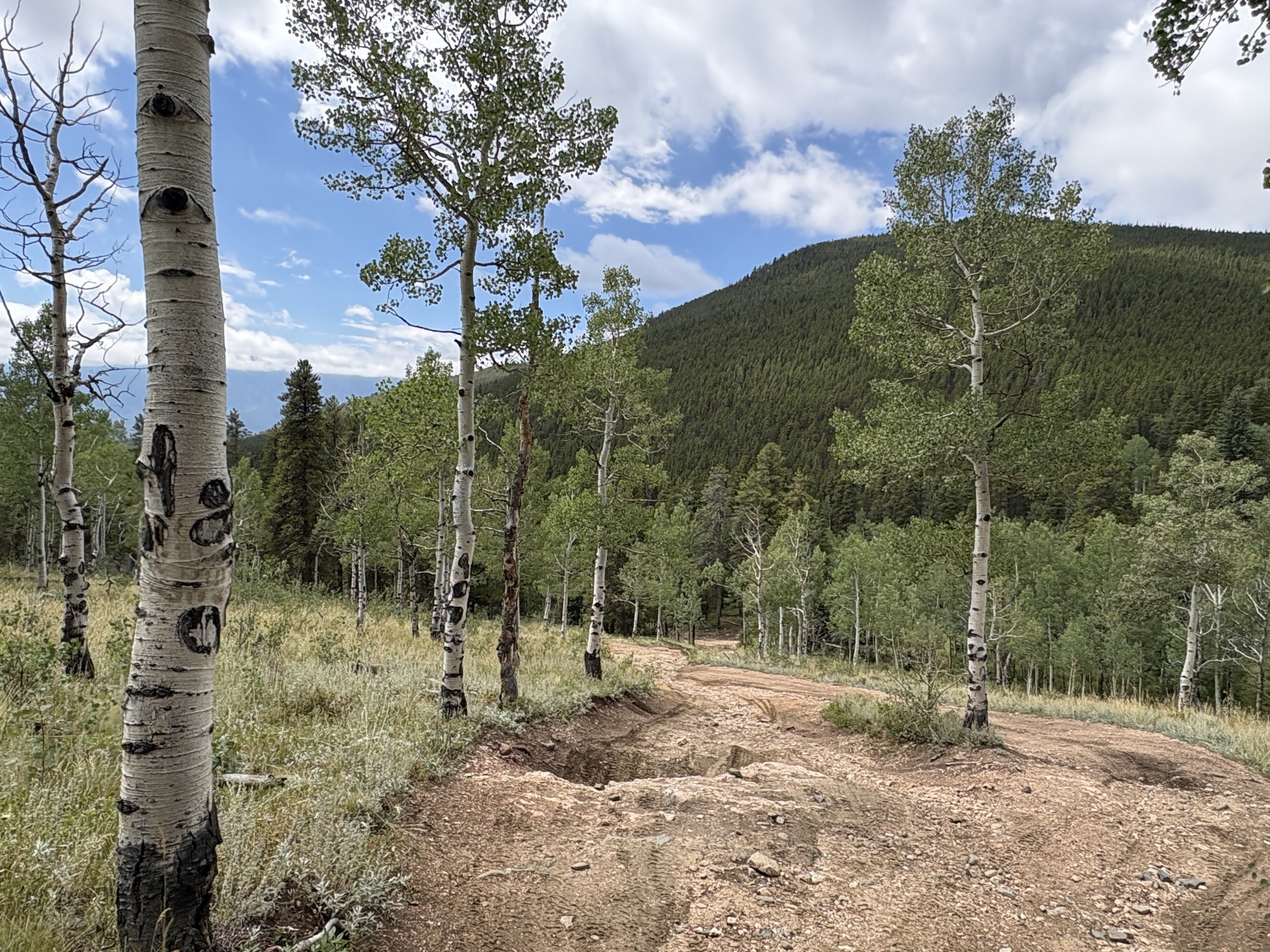 Slaughterhouse Gulch was our only trail of the day, so we started the trail run a little later than usual. We met up at a gas station before going to trailhead for Slaughterhouse Gulch. The forecast called for a rainy day, and it looked like the forecasters were correct. But the rain held off for most of the day, and it only rained for a few minutes while we were on the trail.