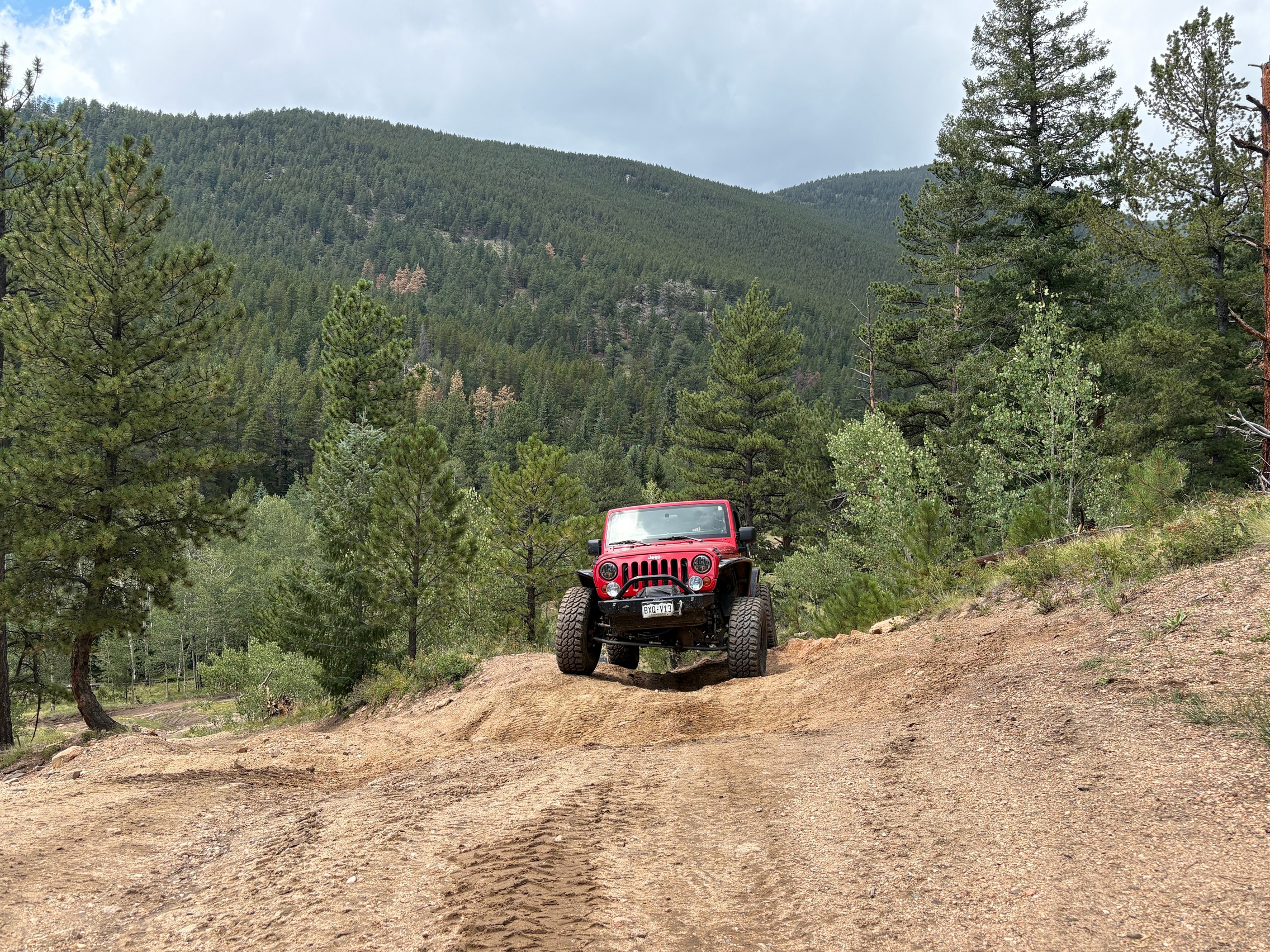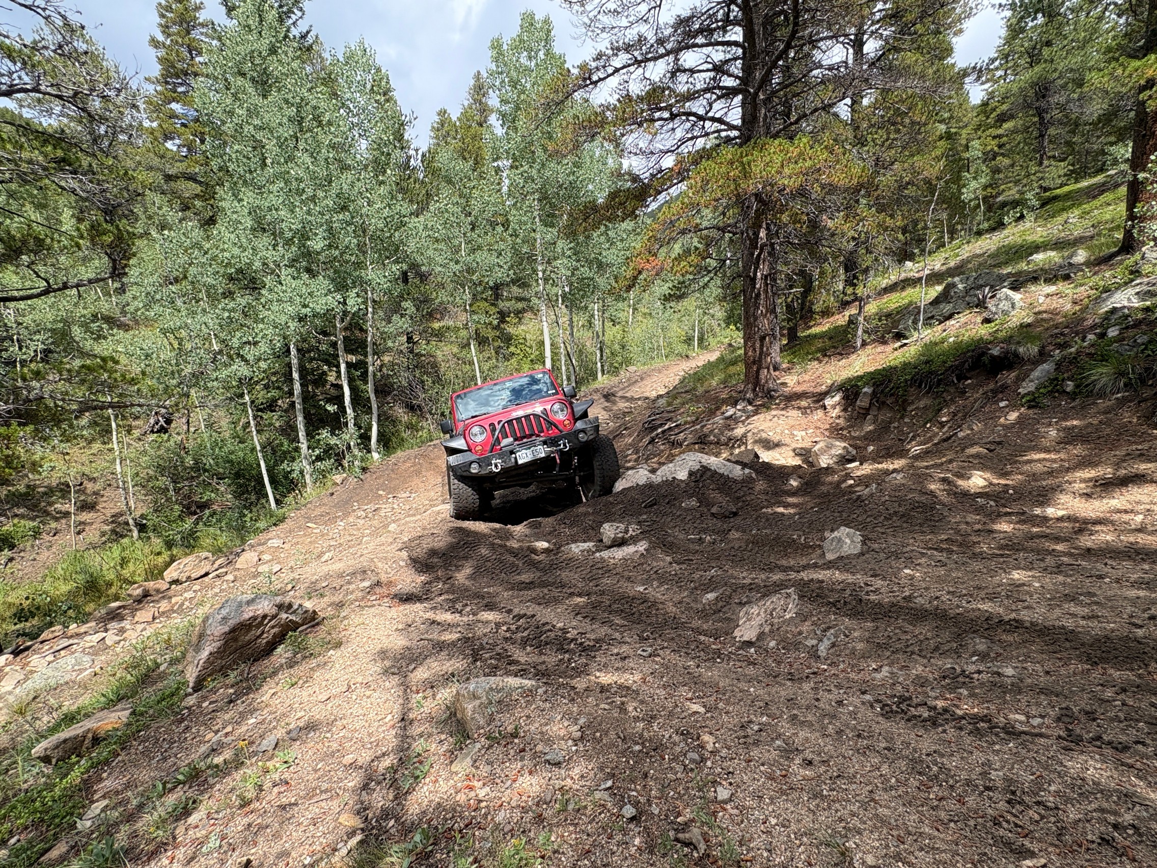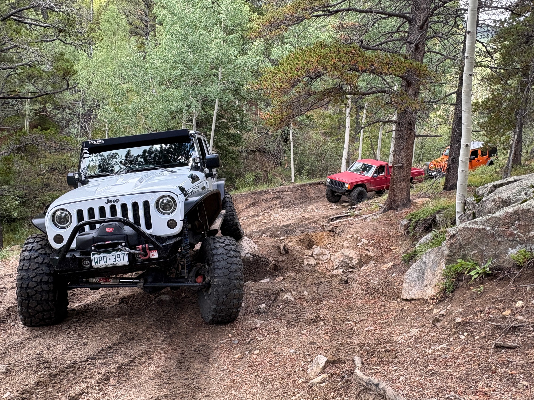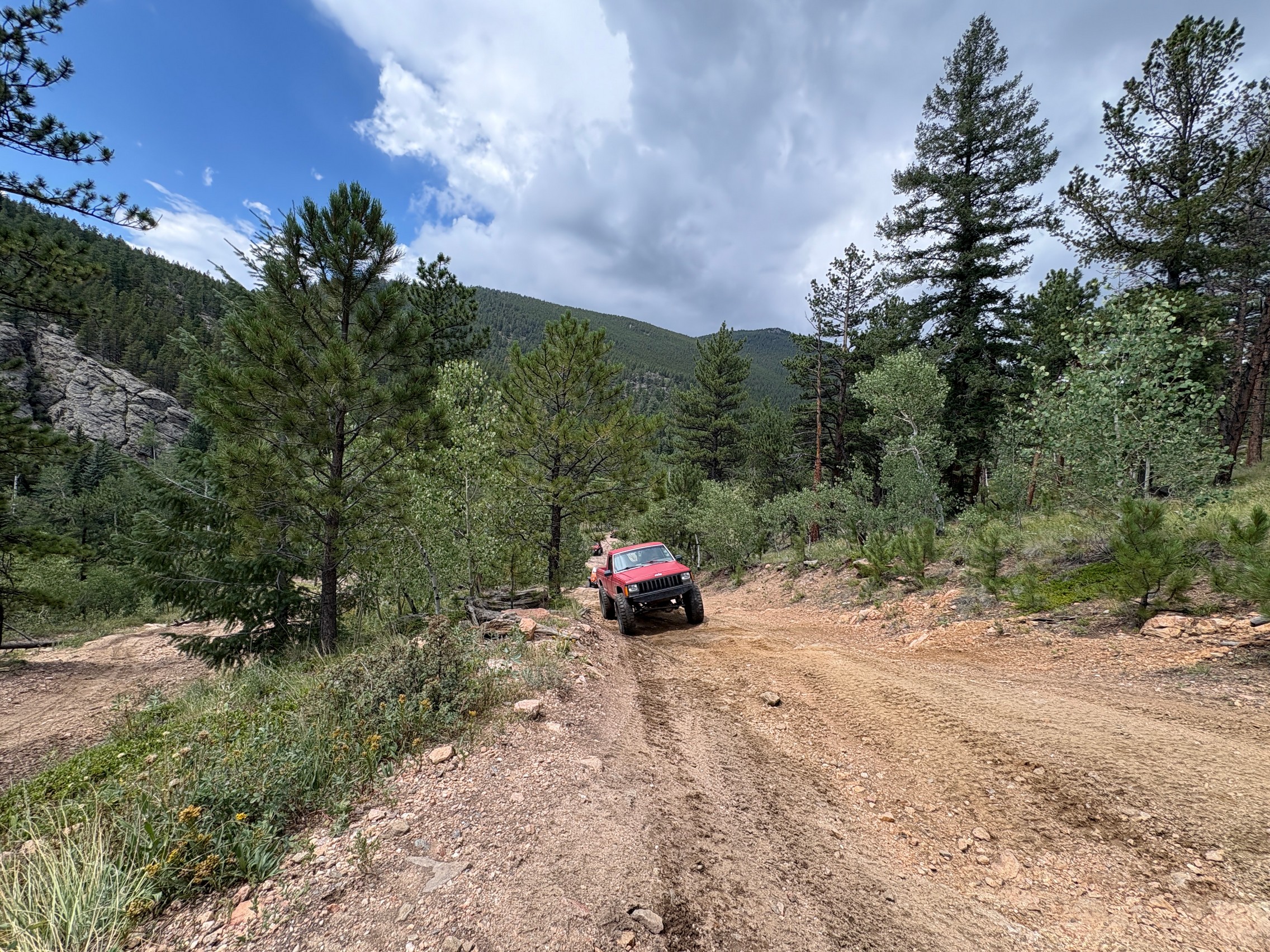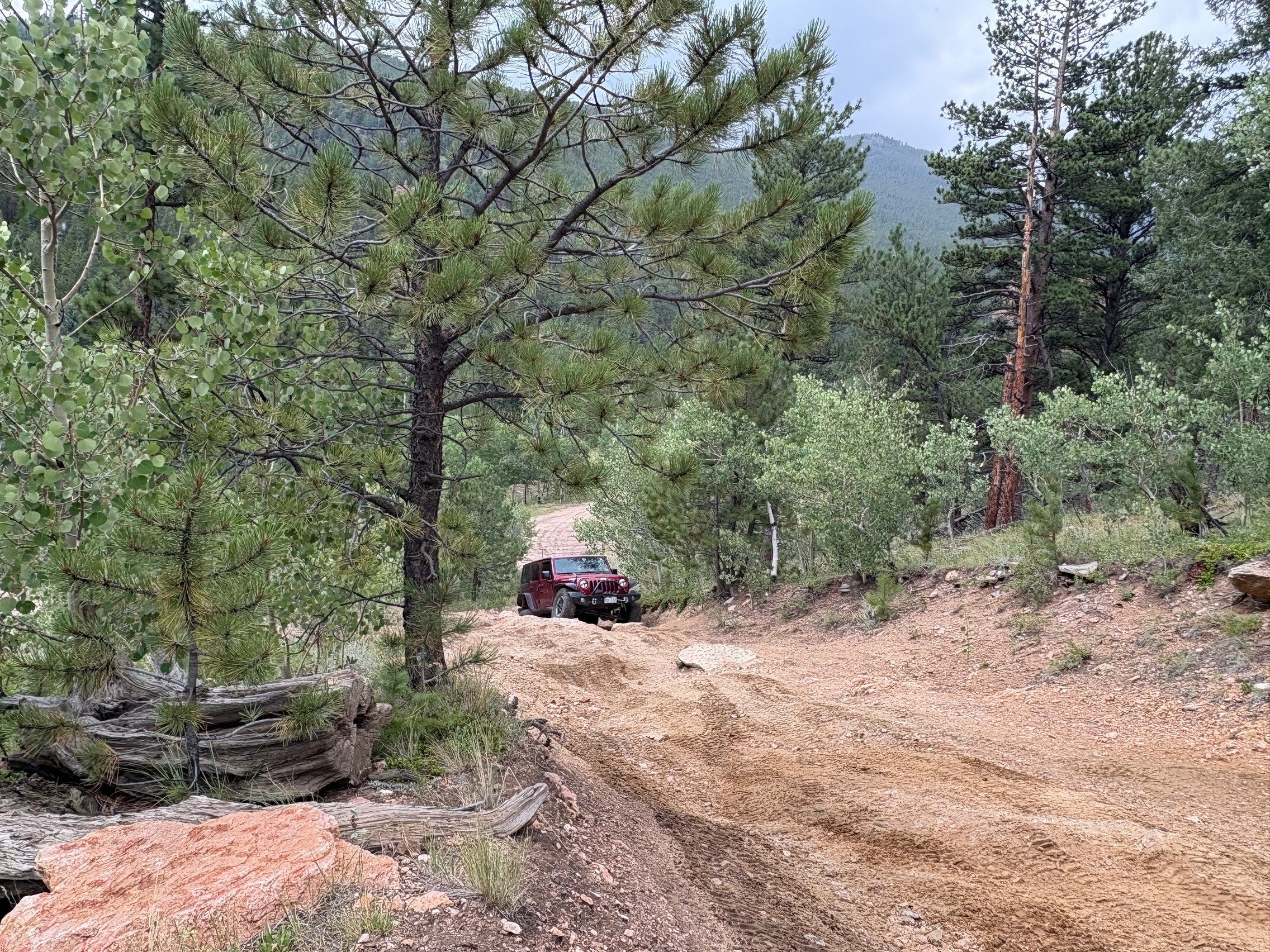 At the first small obstacle, we all went to the right side of the trail. It was easy, just a small, rocky hill climb. When we got to the "Y" in Slaughterhouse Gulch, we went to the right to run the trail clockwise. That's when Calvin's friends were coming up behind us in their Jeeps, so we let them pass us.
