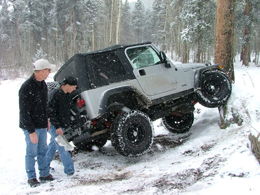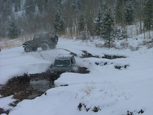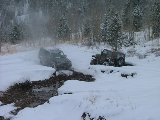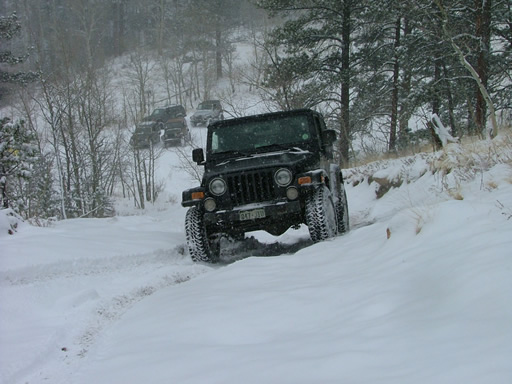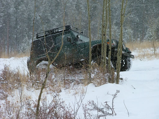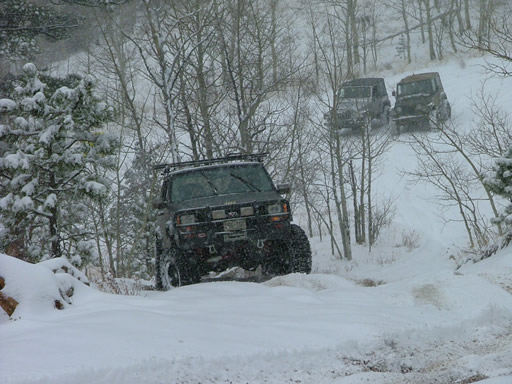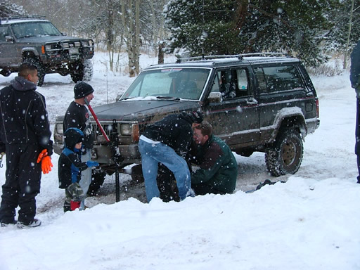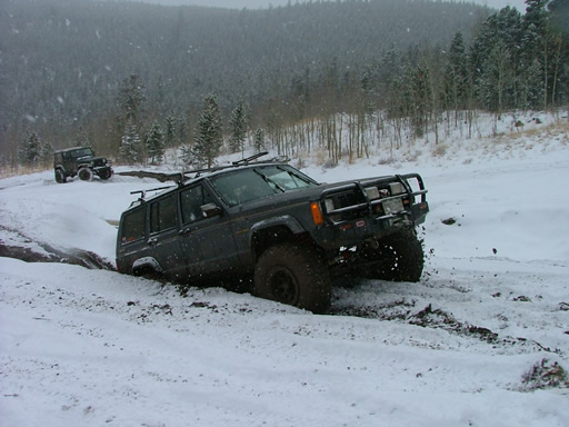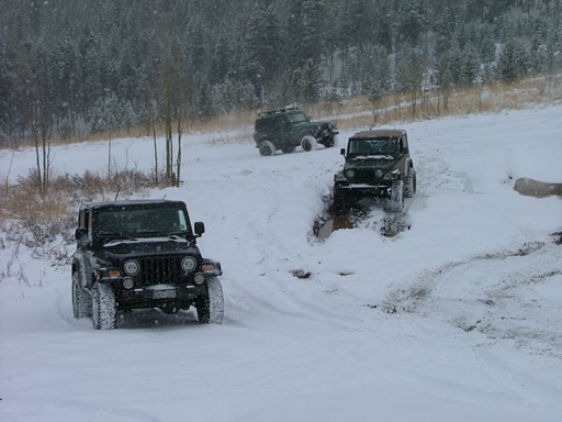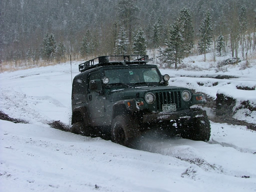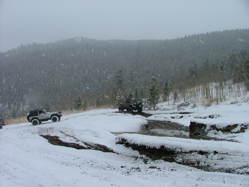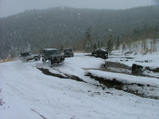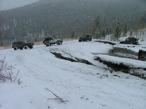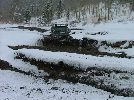 This run had a few characteristics that made it stand out -- it was the last run of the 2004 wheeling season, we did the trail in under 5 hours (that's really quick for us!), no one had any real troubles with the trail even though it was snowing the whole time, and multiple people got quite a lot of trail damage by the time the day was finished. Still, it was a great run to round out a great year of offroading!