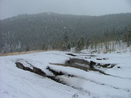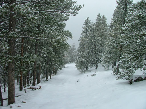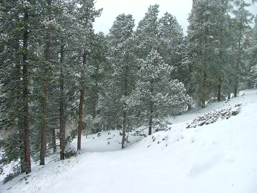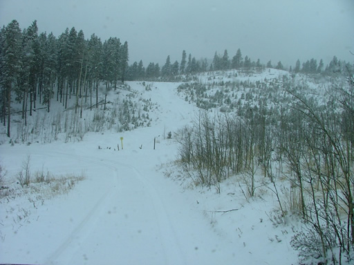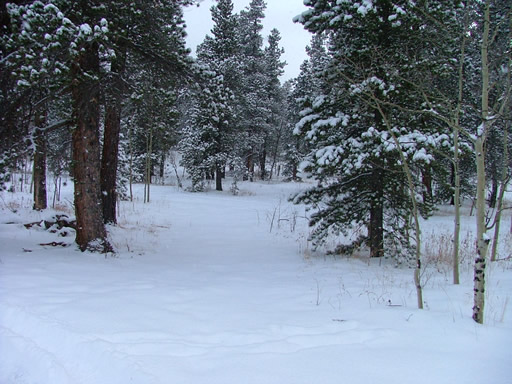 It was snowing in Denver and there was already about an inch or two on the grass, so by the time we all made it to Conifer and our meeting place we were all wondering how the day was going to go. Slaughterhouse Gulch can get pretty ugly if the snow on it has had a chance to melt and then freeze, forming a thick sheet of ice on the whole thing. Luckily this was the first snow in about a week so all we found was fresh powder. Most of the time we were making new tracks in the snow.