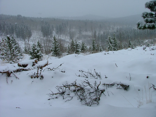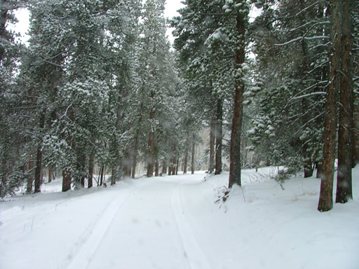 Stump Hill is still very closed so we came around and stopped for lunch at the clearing where the hill starts descending pretty rapidly. Even though it was still snowing and we were in about 4 inches of snow, we decided to finish lunch and continue on to the bottom. The temperatures were below freezing.