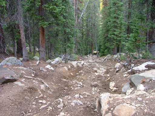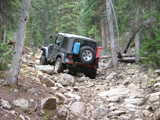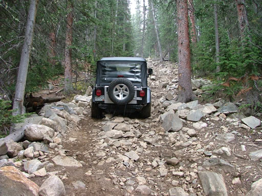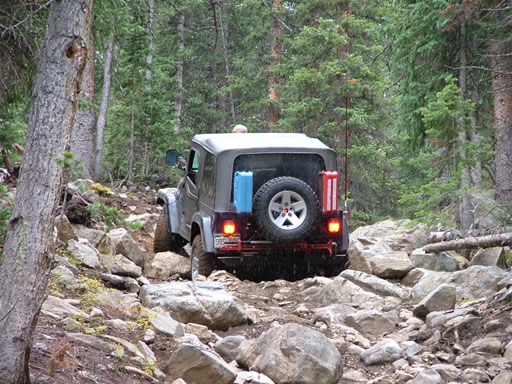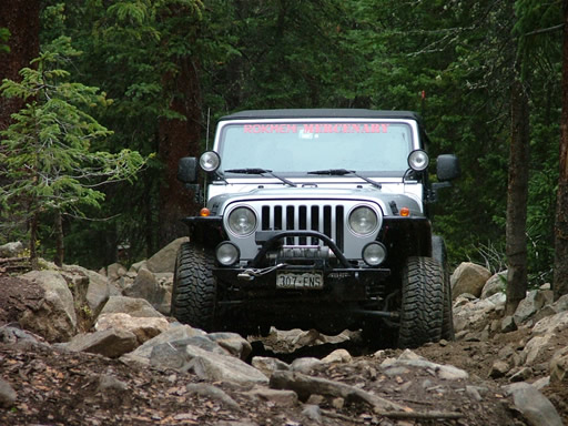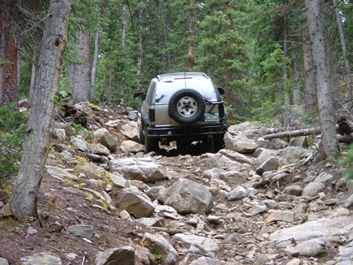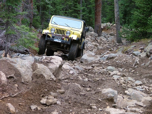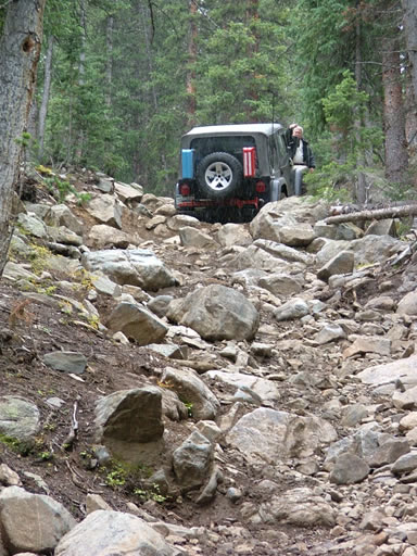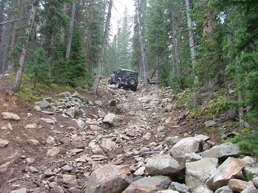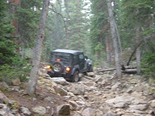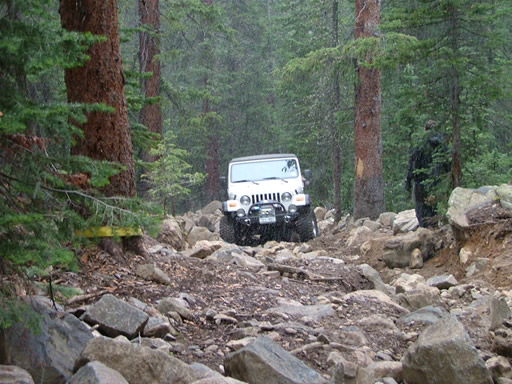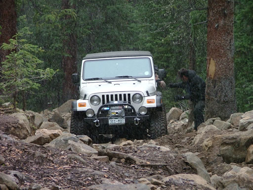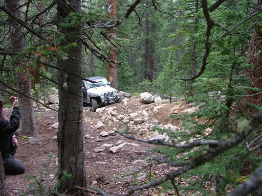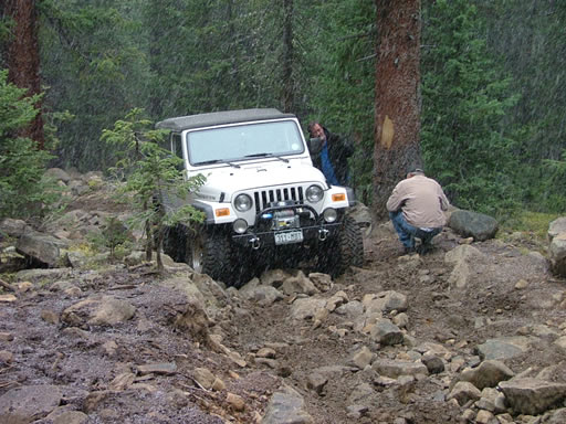 It seemed like things were going well, then she came to a ledge that ran all the way across the hill. It didn't seem like it was that big, but with the trail a little muddy and slick it proved to be impossible. She winched herself over it, and it didn't take much. The rest of the way up was bouncy but she made it to the top without any other issues.