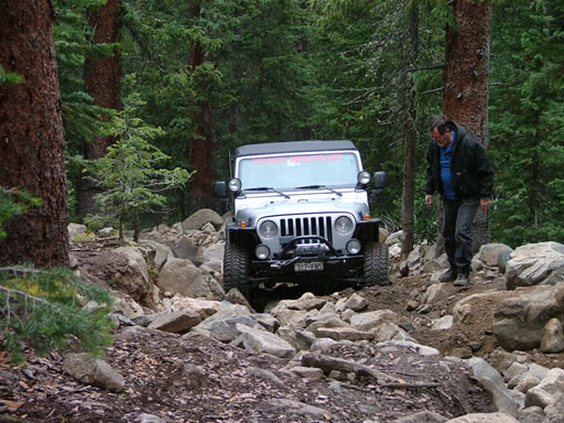 When Walt got to the top, his rear end kept bouncing to the right instead of driving over the rocks at the top. He had to get his winch out a couple more times to get over the top, but he worked at it and made it.
