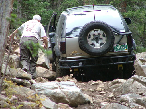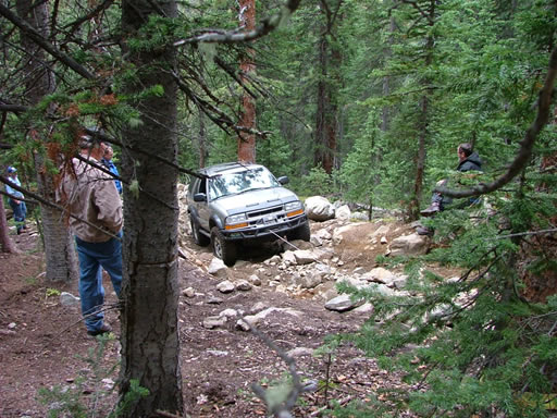 Walt had taken his Blazer up S.O.B. Hill the year before, and though it wasn't a very easy trip up he did make it just fine. This year was going to take some work, too. He got to the ledge and also couldn't get over it, so he winched over that part.