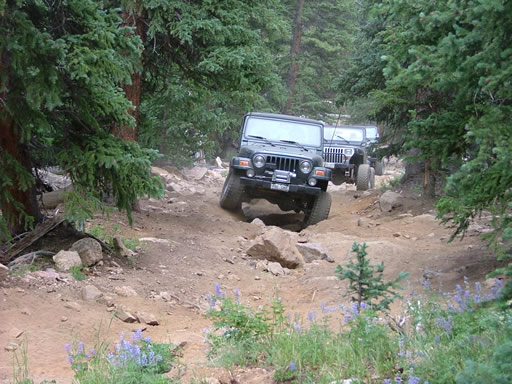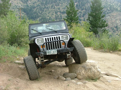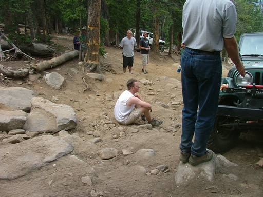 The beginning of the Rock Garden didn't give her any troubles, but then she was on the big rocks on the left side in the middle of the biggest rocks. She was able to get to the middle of the section but with 3.07 gears she couldn't get enough power to get through it. You could smell the clutch burning and then she put in the clutch one final time and her Jeep died. It wouldn't start again.