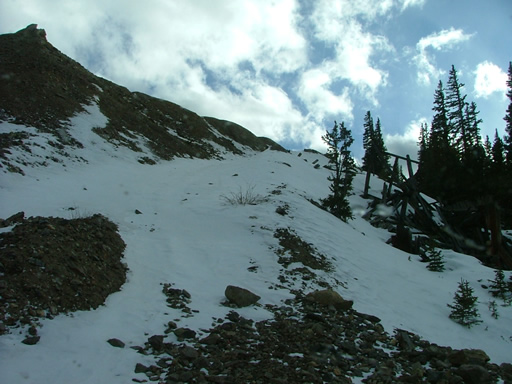 We started down towards Ute Creek, intending on running Cascade Creek. When we got to the big crossroads we decided to go explore the Ben Harrison Mine area which isn't too far from the crossroads down the Spring Gulch trail. There are some steep hills of loose rocks that we wanted to check out.