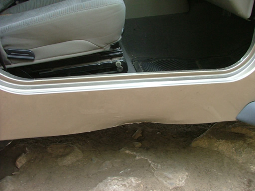 Jon did the same line on the left, and he really made it look easy. On his way to the obstacle, though, he drove into a rock and messed up his fender flare. Unfortunately, he didn't have rocker guards yet and he dented in his tub just below his passenger door as he went through the obstacle.