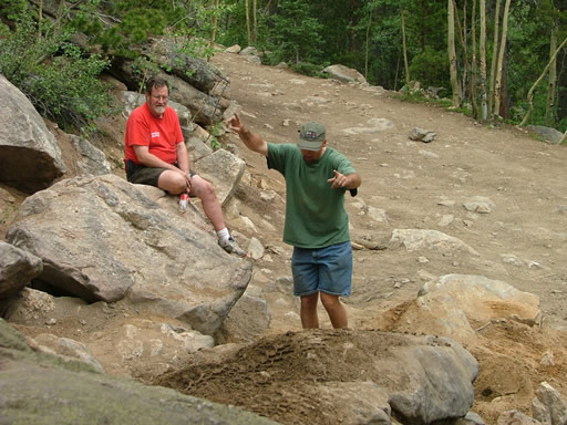 Pat and Jon worked on the Rock Garden bypass. It is more dug out than it has been in past years, and it was difficult for them. Jon hit his rocker guard again in the same place, putting a big scrape over the dent he got earlier.