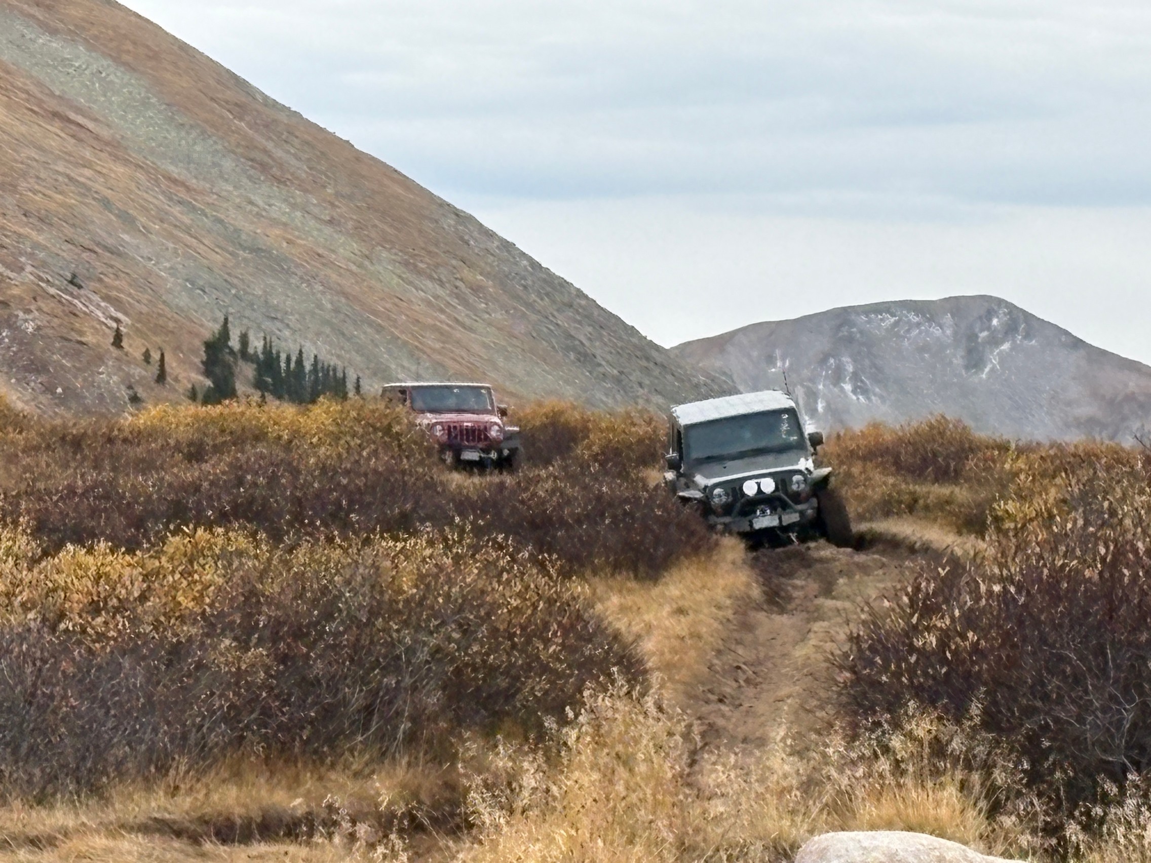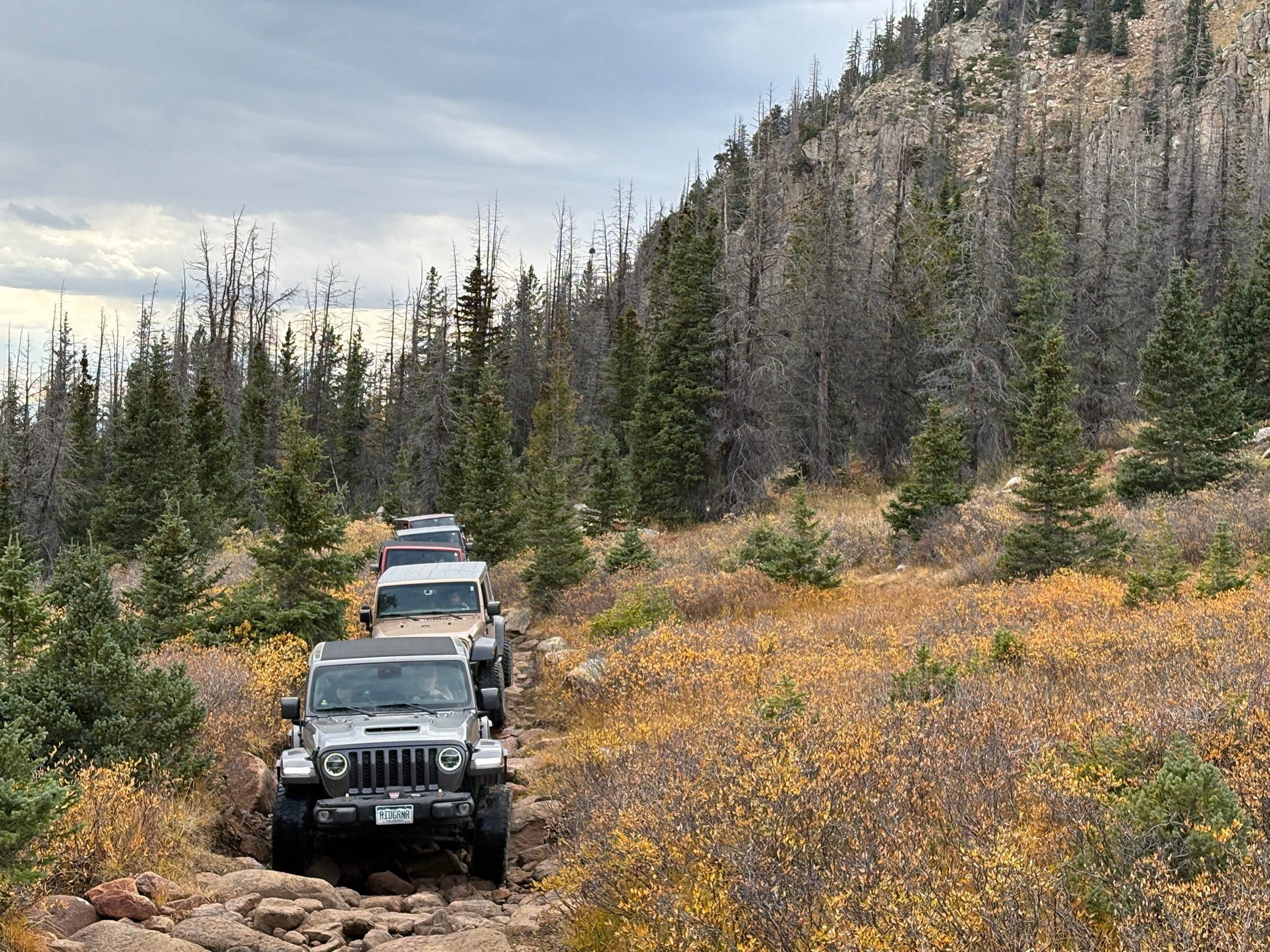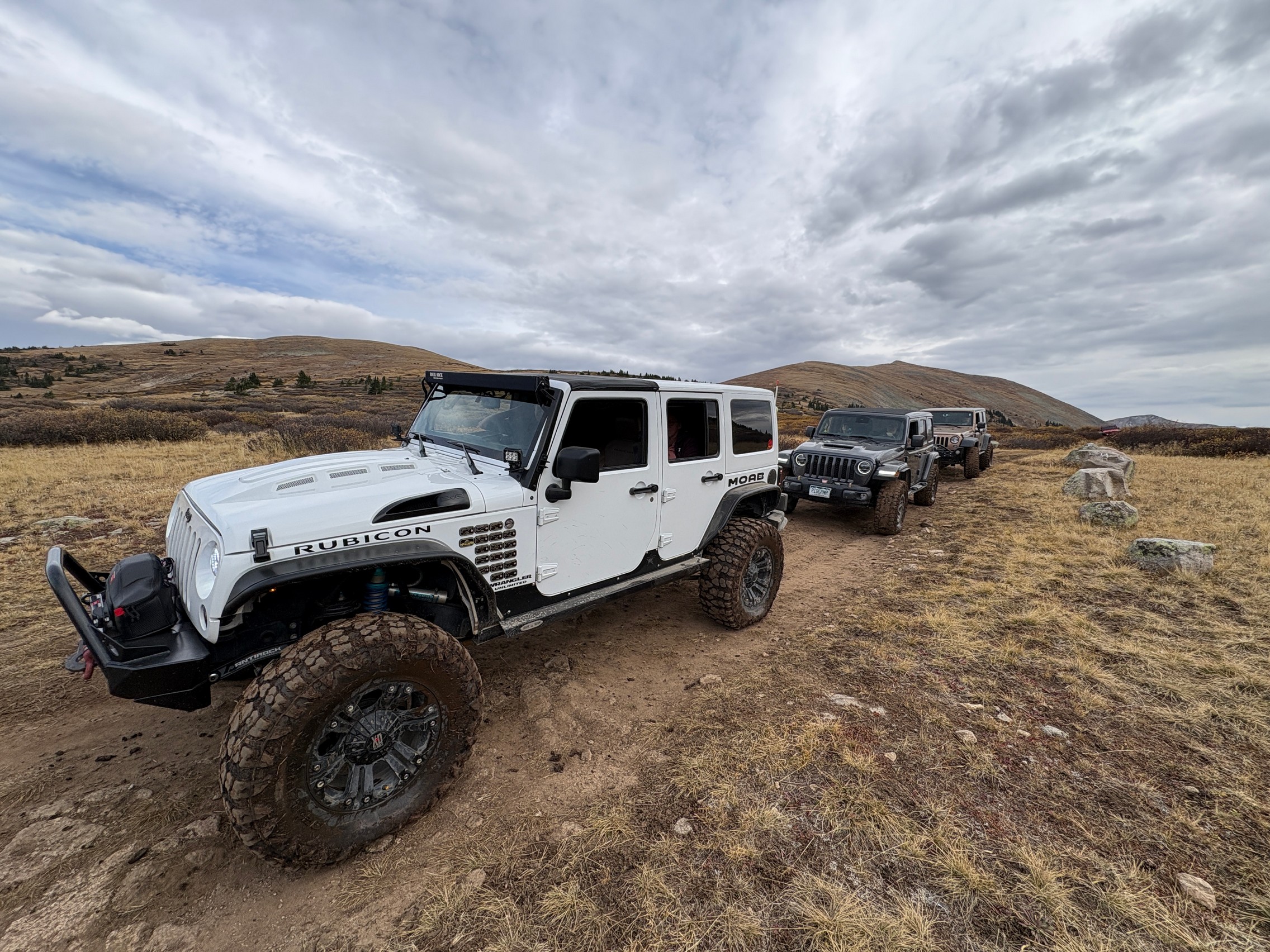 Going down the pass on the other side was much easier, and it wasn't muddy or rocky like going up the pass. We went to the same parking lot where we aired down earlier to air back up. It was a long day, but we all had a great time enjoying all the fall colors.