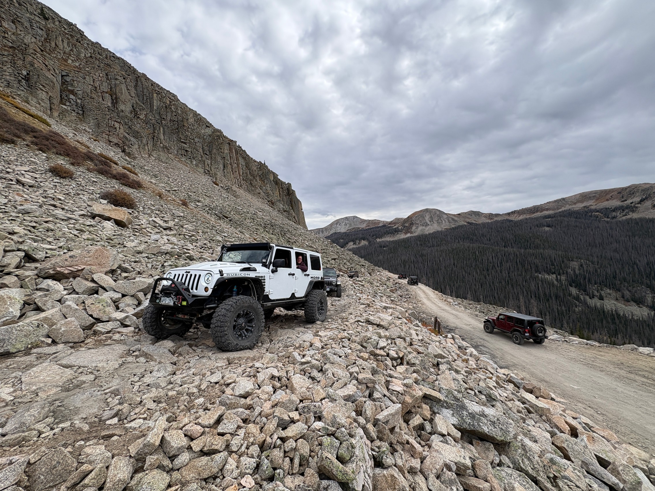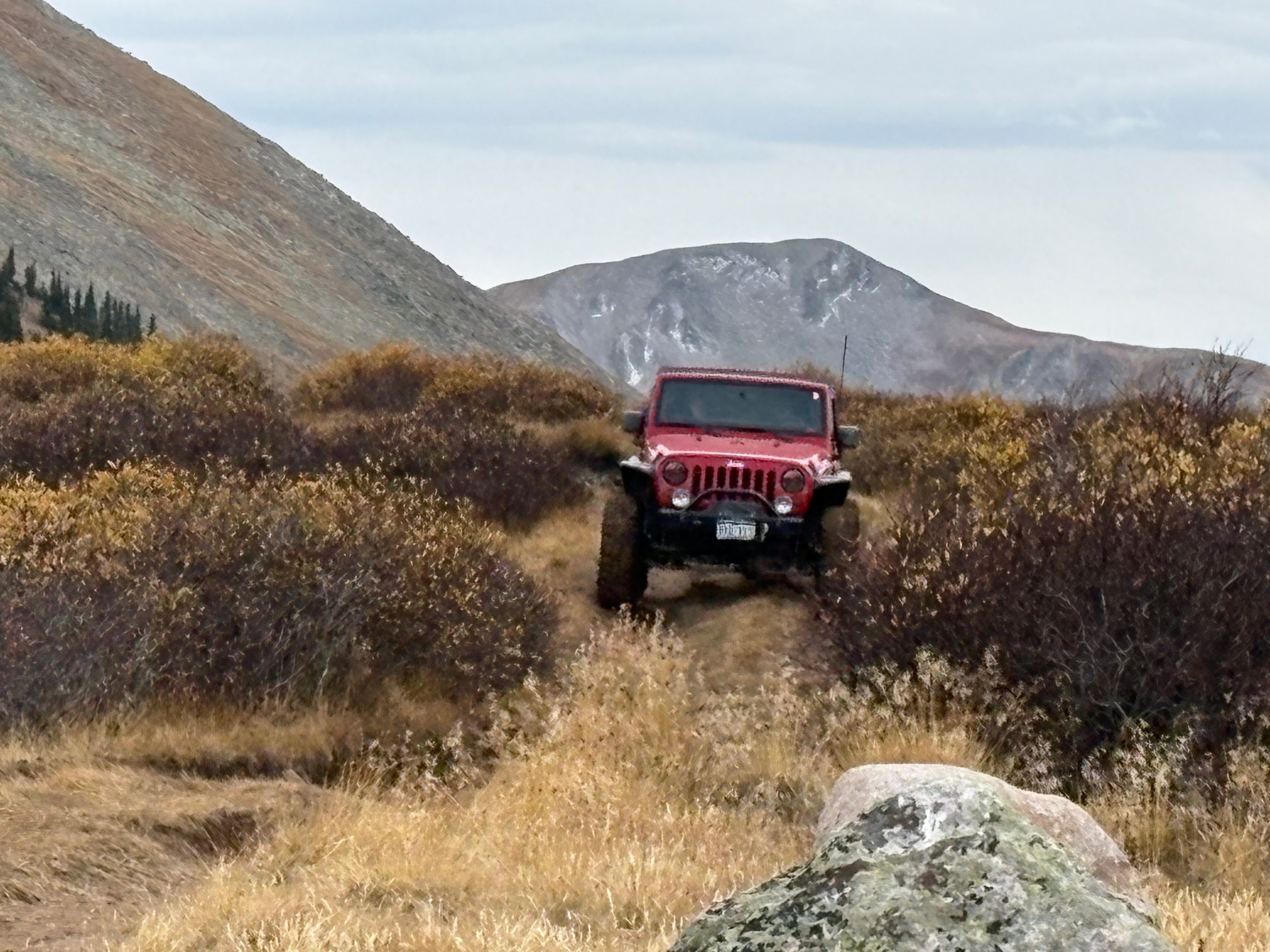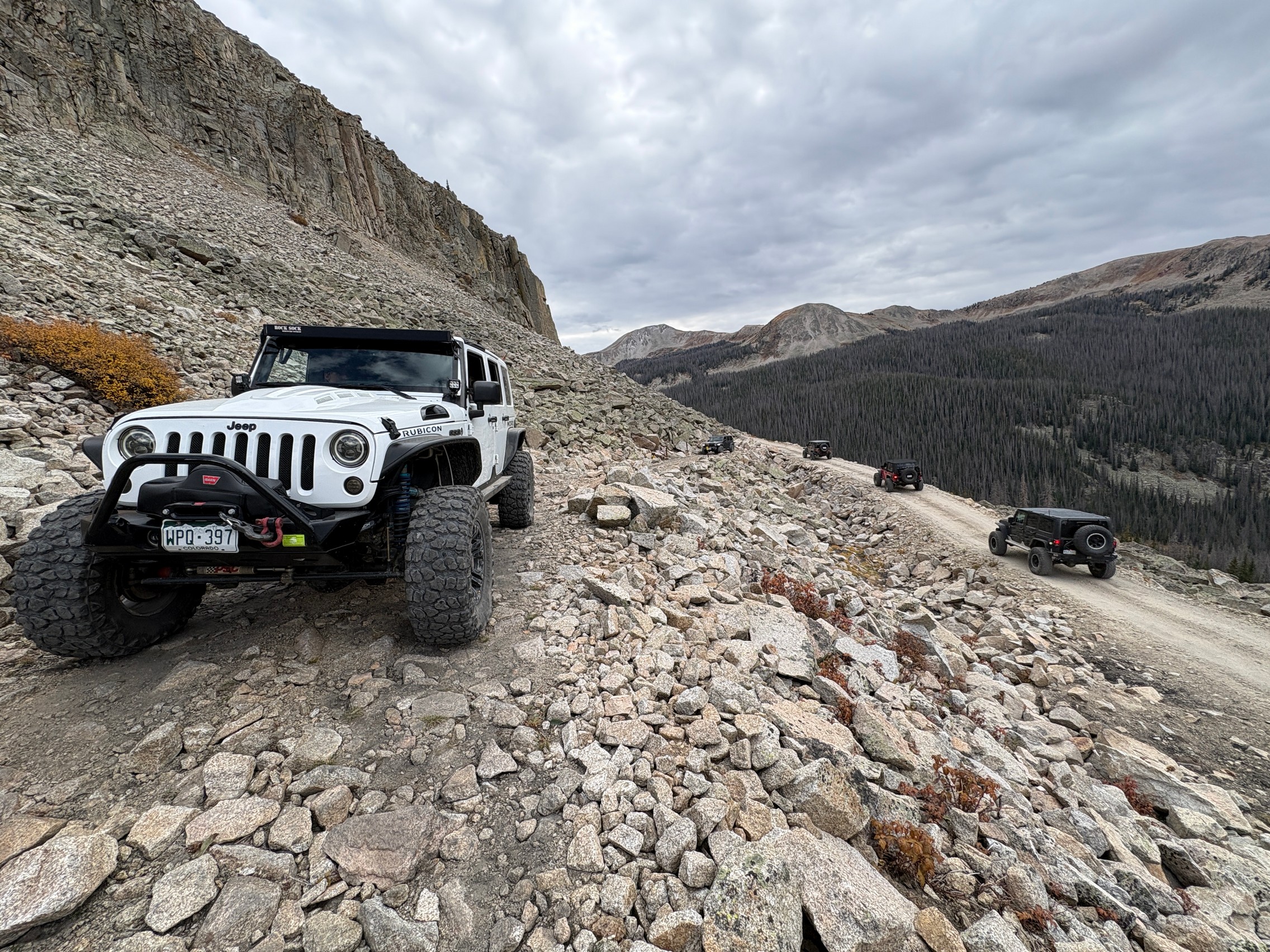 Going down the pass on the other side was much easier, and it wasn't muddy or rocky like going up the pass. We went to the same parking lot where we aired down earlier to air back up. It was a long day, but we all had a great time enjoying all the fall colors.