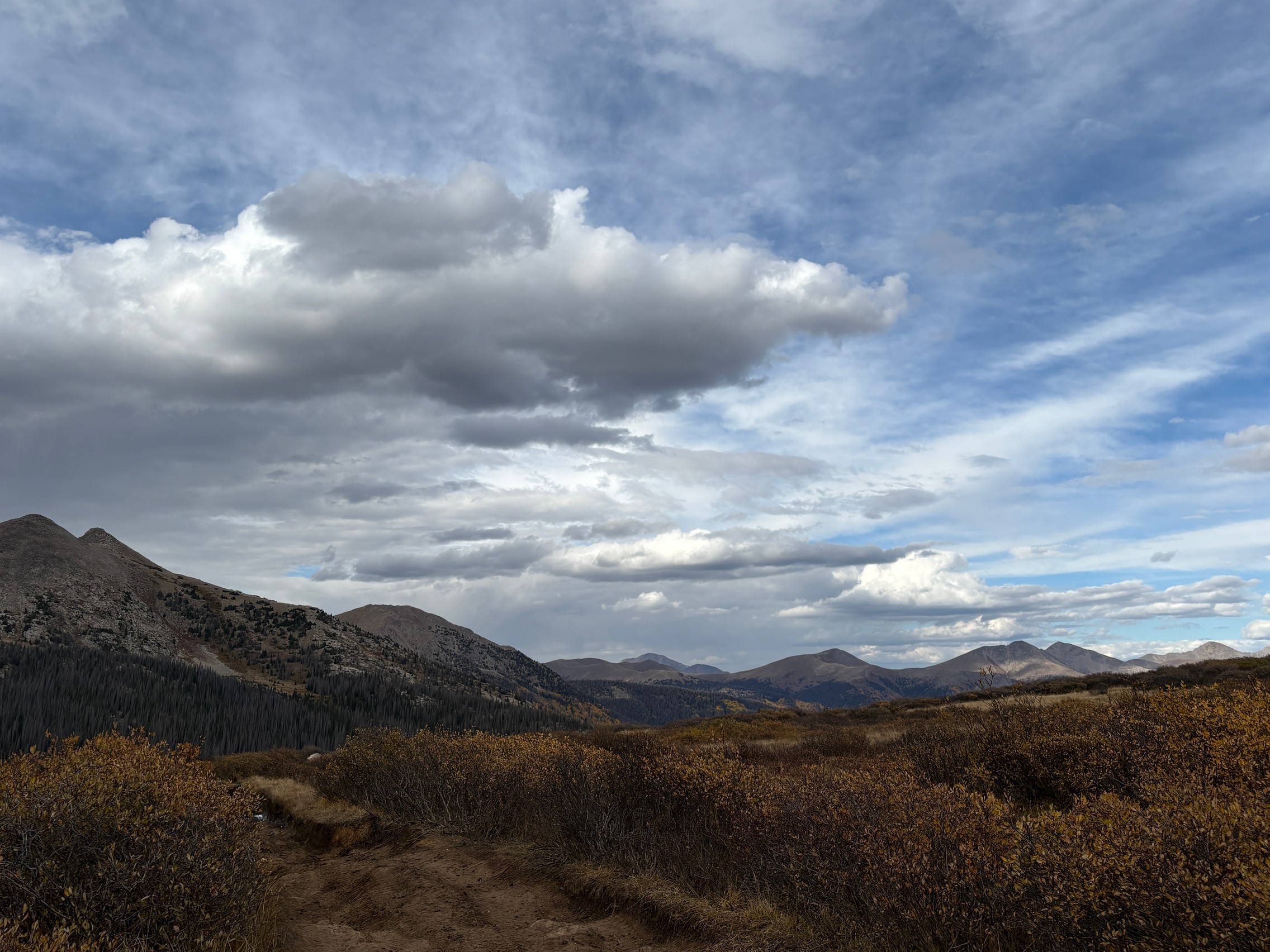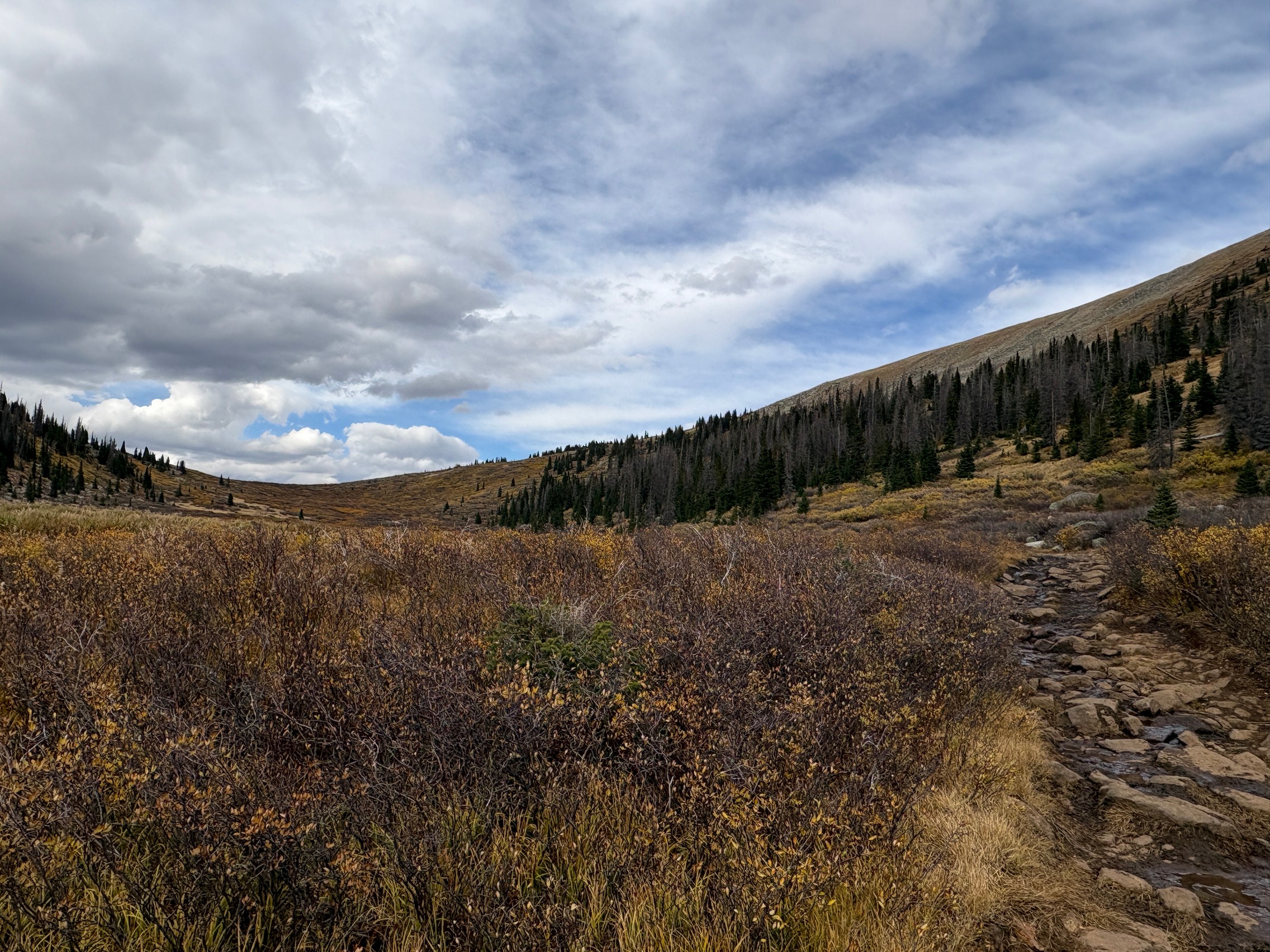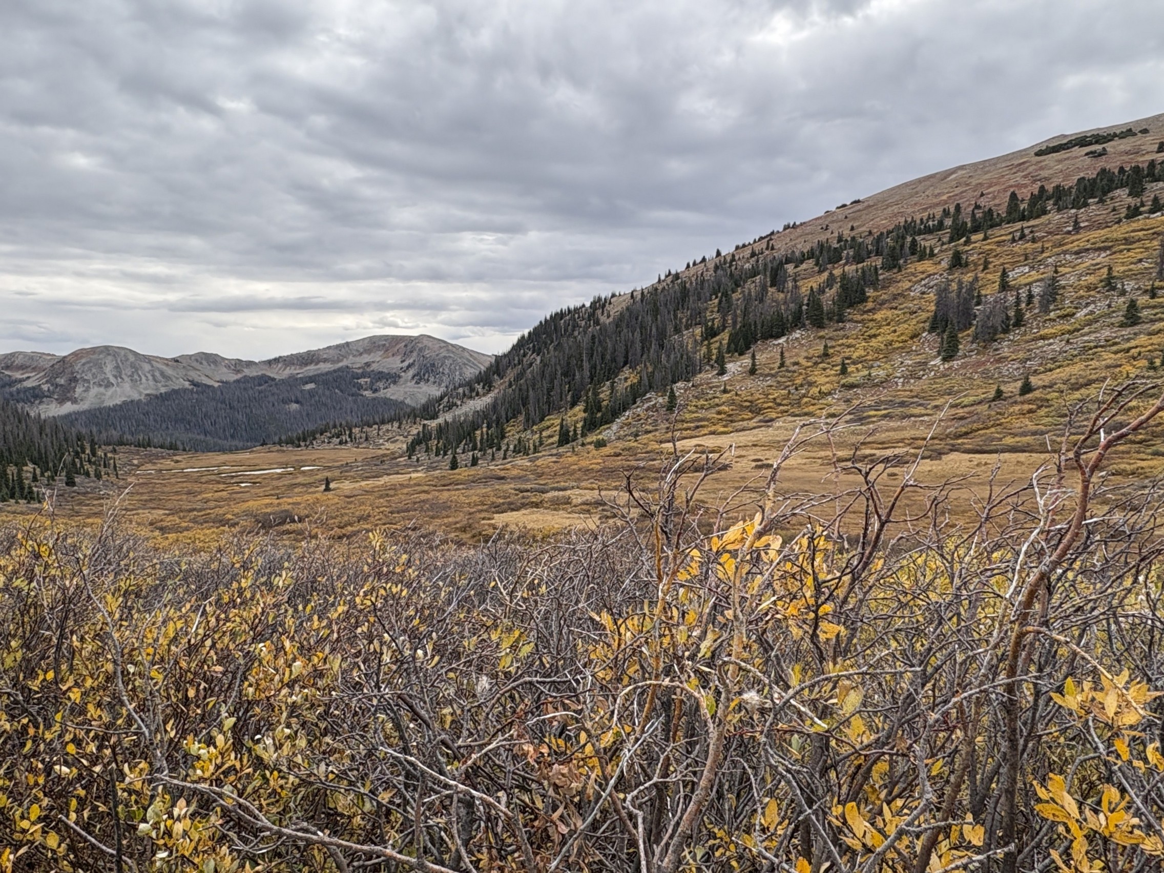Williams Pass was very scenic, wet and muddy, interspersed with big rocks and water running down the trail or crossing it. We didn't have any significant issues with the muddy and rocky trail, though a few spots were a little tricky. The view from the top of Williams Pass with all the fall colors below us in the valley around the ghost town of St. Elmo was worth the trip over Williams Pass.