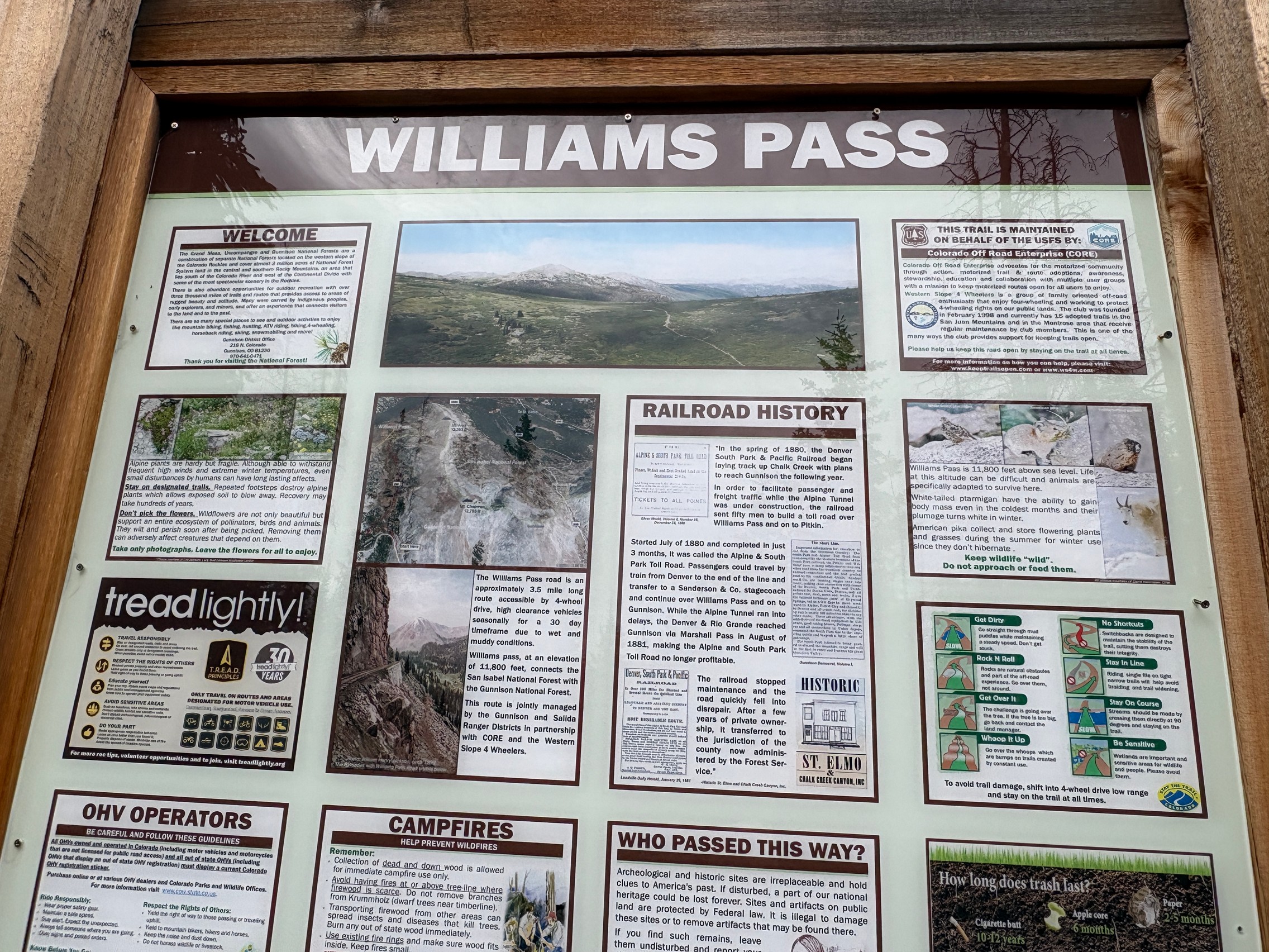 Williams Pass was the second and last trail of the day after having a great time on Hancock Pass. The 4x4 trail is only open for a month every year. Since we saw it 17 years ago, there have been improvements to the West Portal area and on the road leading to it. We were all very happy to see that the Williams Pass trail was open.